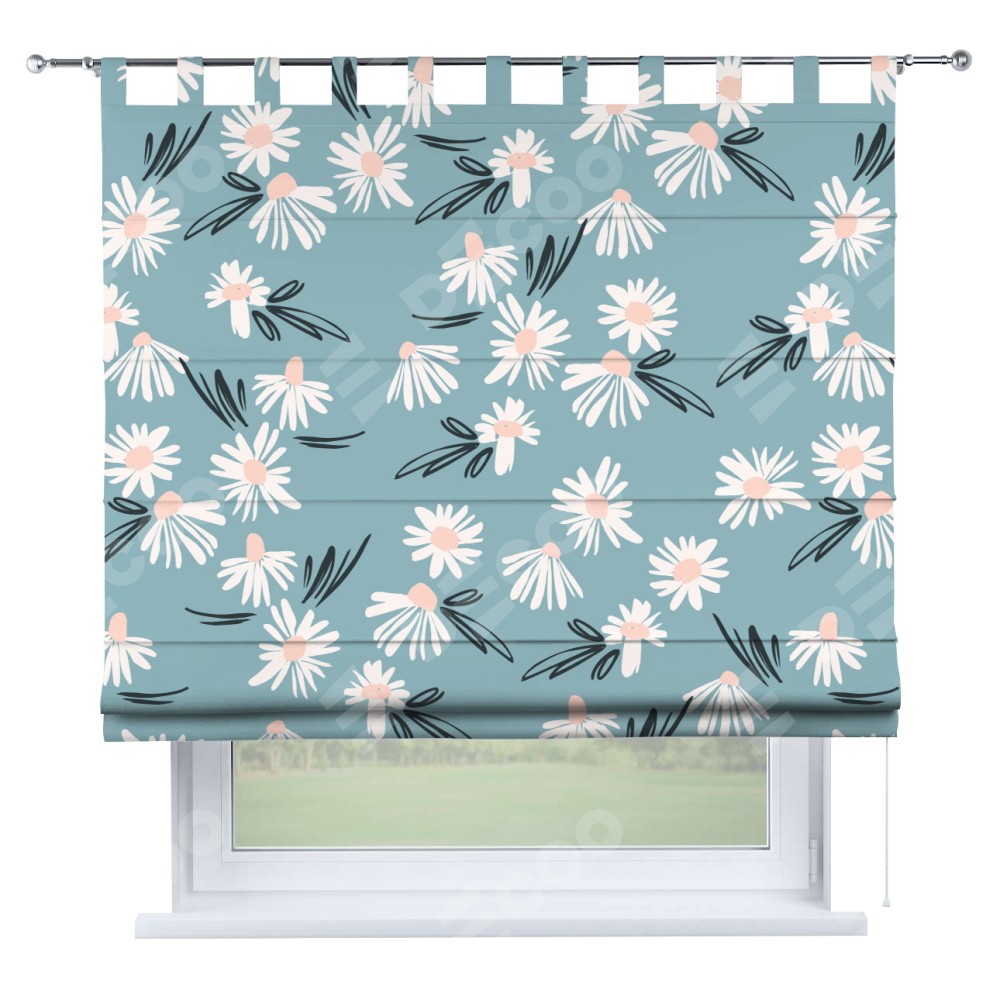 Римская штора производителя «Cortin», используется для проёма, пошита из ткани блэкаут с нанесением сублимационной печати «Чудесные ромашки». Данная модель пошита на петлях, комплектуется на выбор круглым карнизом и подходит для монтажа на стену. Римская штора на петлях имеет простую систему регулировки высоты, отличительным преимуществом данной модели является простой способ монтажа. Достаточно повесить ее на трубу и штора готова!