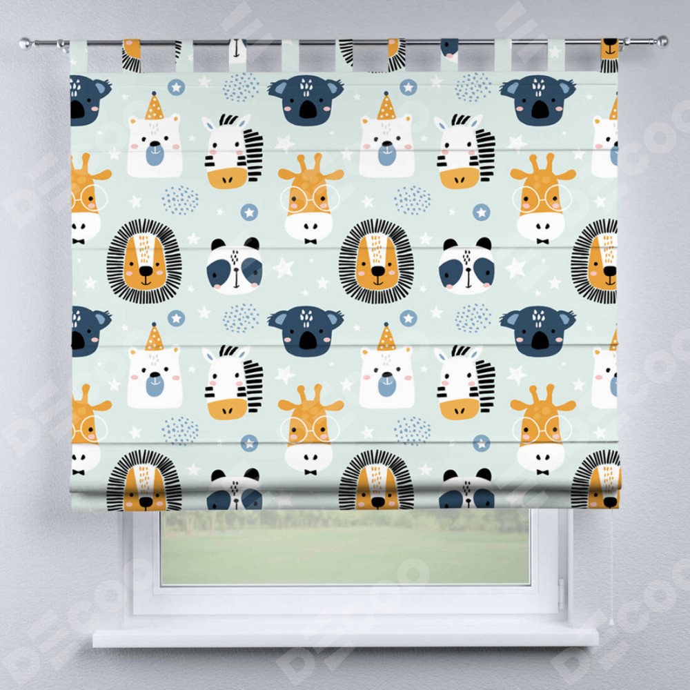 Римская штора производителя «Cortin», используется для проёма, пошита из ткани блэкаут с нанесением сублимационной печати «Чудесный зоопарк». Данная модель пошита на петлях, комплектуется на выбор круглым карнизом и подходит для монтажа на стену. Римская штора на петлях имеет простую систему регулировки высоты, отличительным преимуществом данной модели является простой способ монтажа. Достаточно повесить ее на трубу и штора готова!