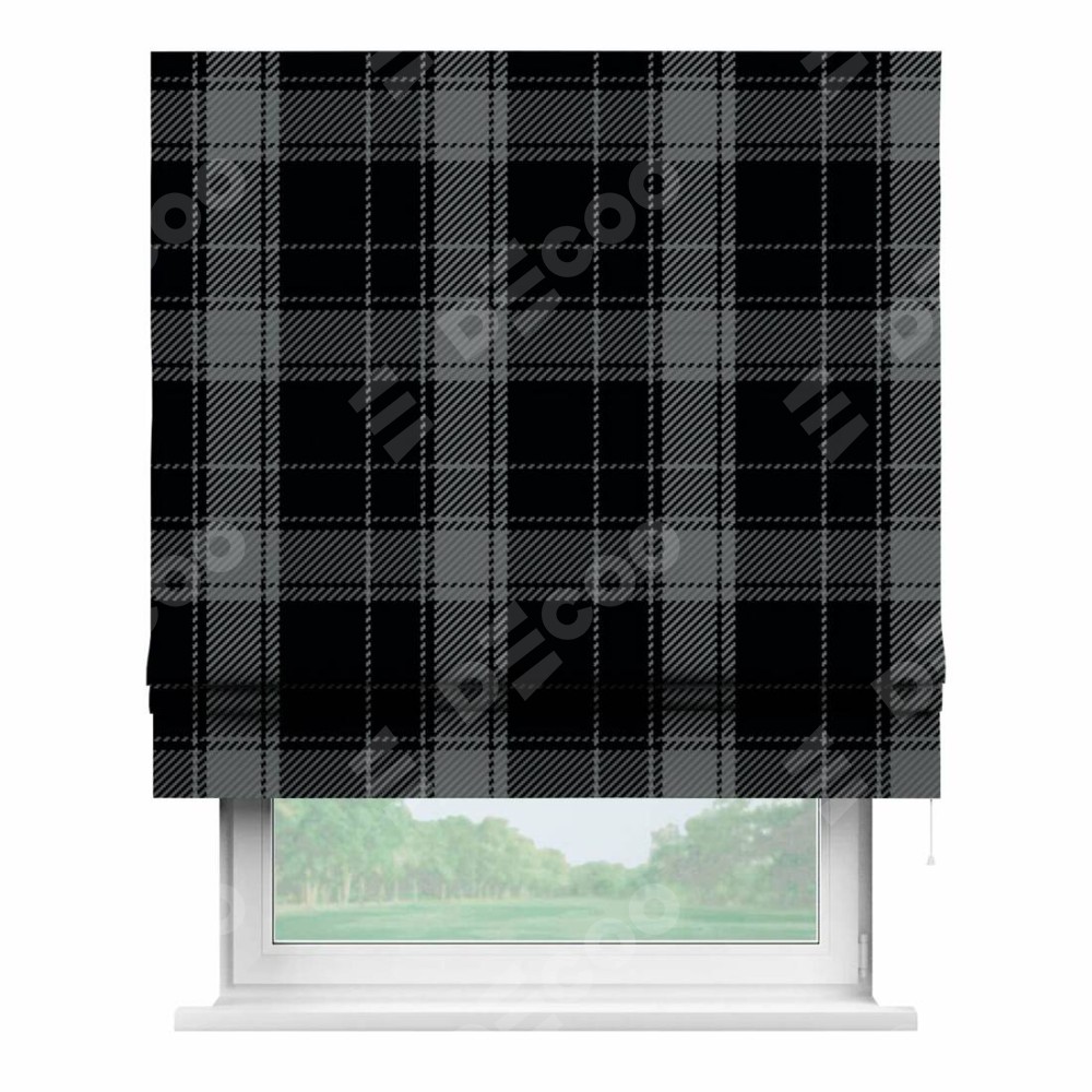 Римская штора производителя «Cortin», используется для проёма, пошита из ткани блэкаут с нанесением сублимационной печати «Стильная клетка». Имеет универсальный механизм и подходит для монтажа: на потолок, на стену и в нишу.