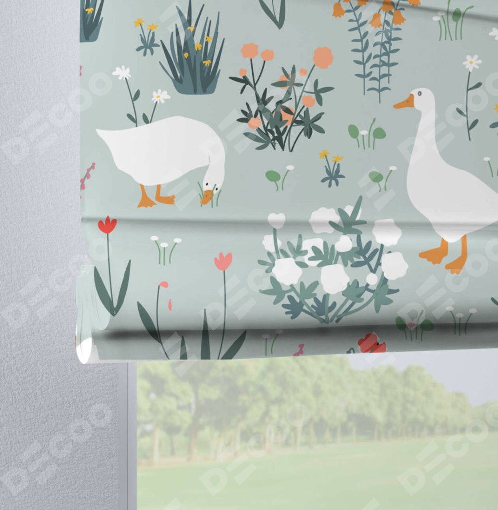 Римская штора производителя «Cortin», используется для проёма, пошита из ткани блэкаут с нанесением сублимационной печати «Гуси на лугу». Данная модель пошита на петлях, комплектуется на выбор круглым карнизом и подходит для монтажа на стену. Римская штора на петлях имеет простую систему регулировки высоты, отличительным преимуществом данной модели является простой способ монтажа. Достаточно повесить ее на трубу и штора готова!