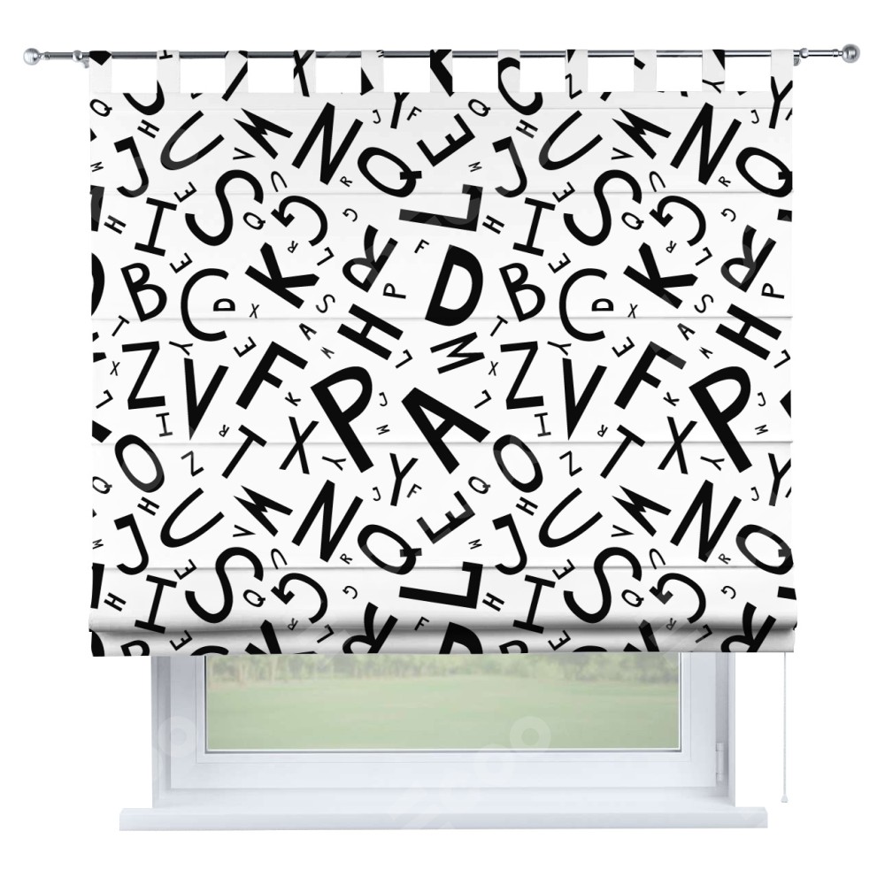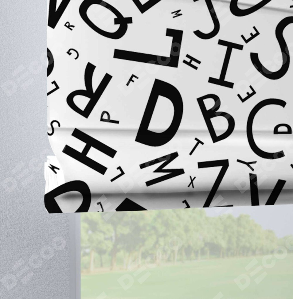 Римская штора на петлях «Литеры на белом»