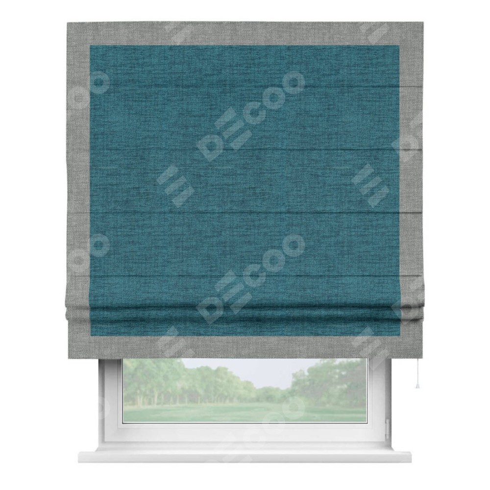 Римская штора «Кортин» с кантом Чесс, для проема, ткань рогожка димаут, синий