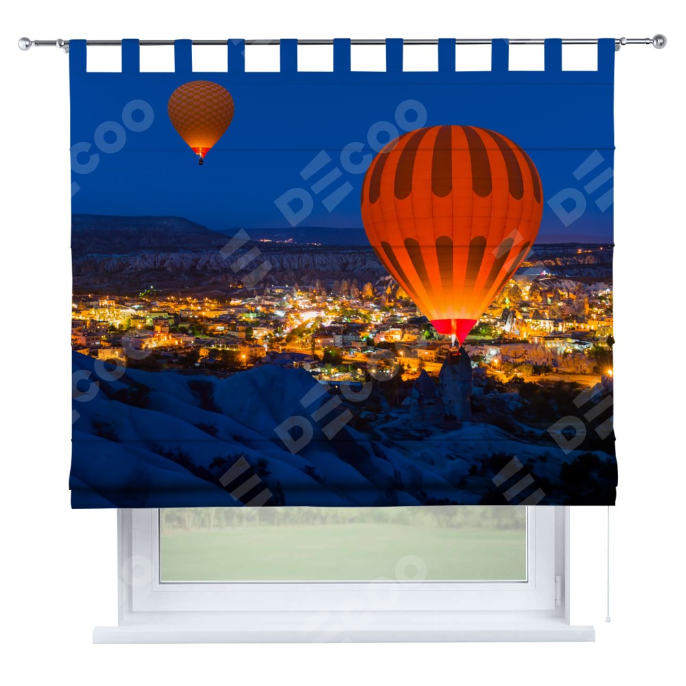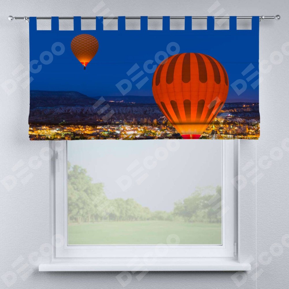 Римская штора производителя «Cortin», используется для проёма, пошита из ткани блэкаут с нанесением сублимационной печати «Воздушные шары в небе». Данная модель пошита на петлях, комплектуется на выбор круглым карнизом и подходит для монтажа на стену. Римская штора на петлях имеет простую систему регулировки высоты, отличительным преимуществом данной модели является простой способ монтажа. Достаточно повесить ее на трубу и штора готова!