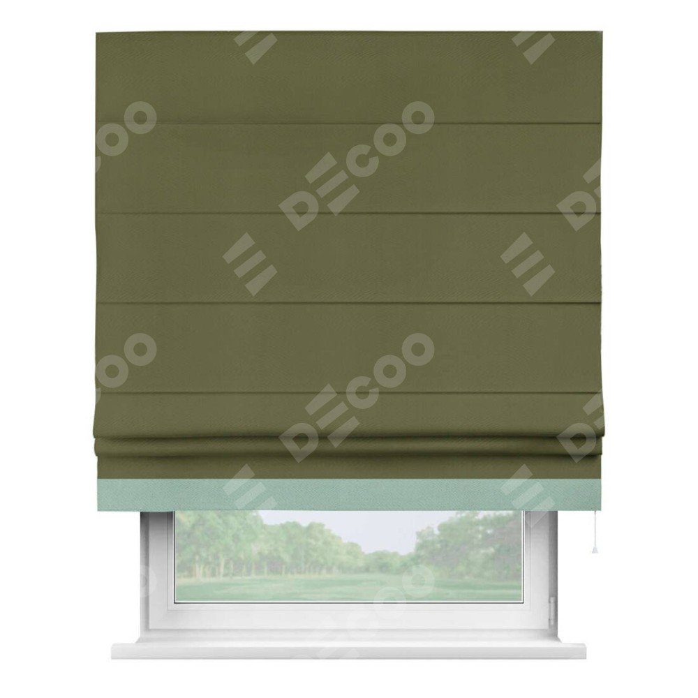 Римская штора «Кортин» с кантом Джестер, для проема, ткань блэкаут однотонный зелёный