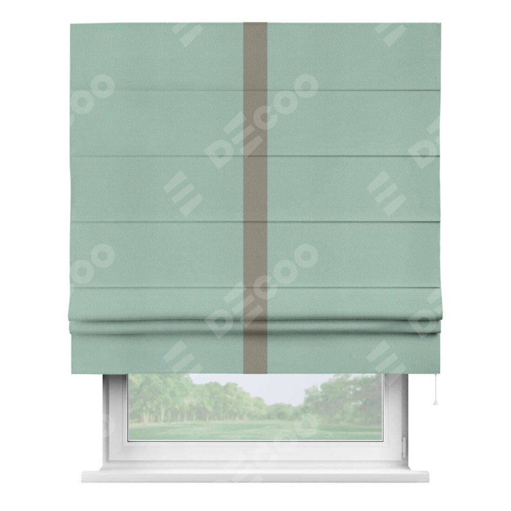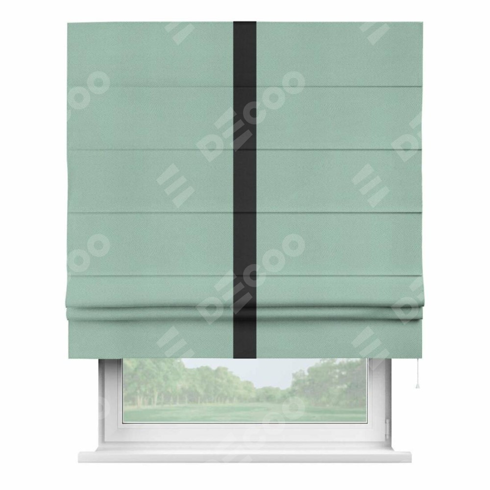 Римская штора производителя «Cortin», используется для проёма, пошита из ткани блэкаут однотонный ментоловый, артикул ткани 29584. Отделка шторы кантом «Хайвей», ткань для канта используется из блэкаута однотонного разной расцветки на выбор. Имеет универсальный механизм и подходит для монтажа: на потолок, на стену и в нишу.