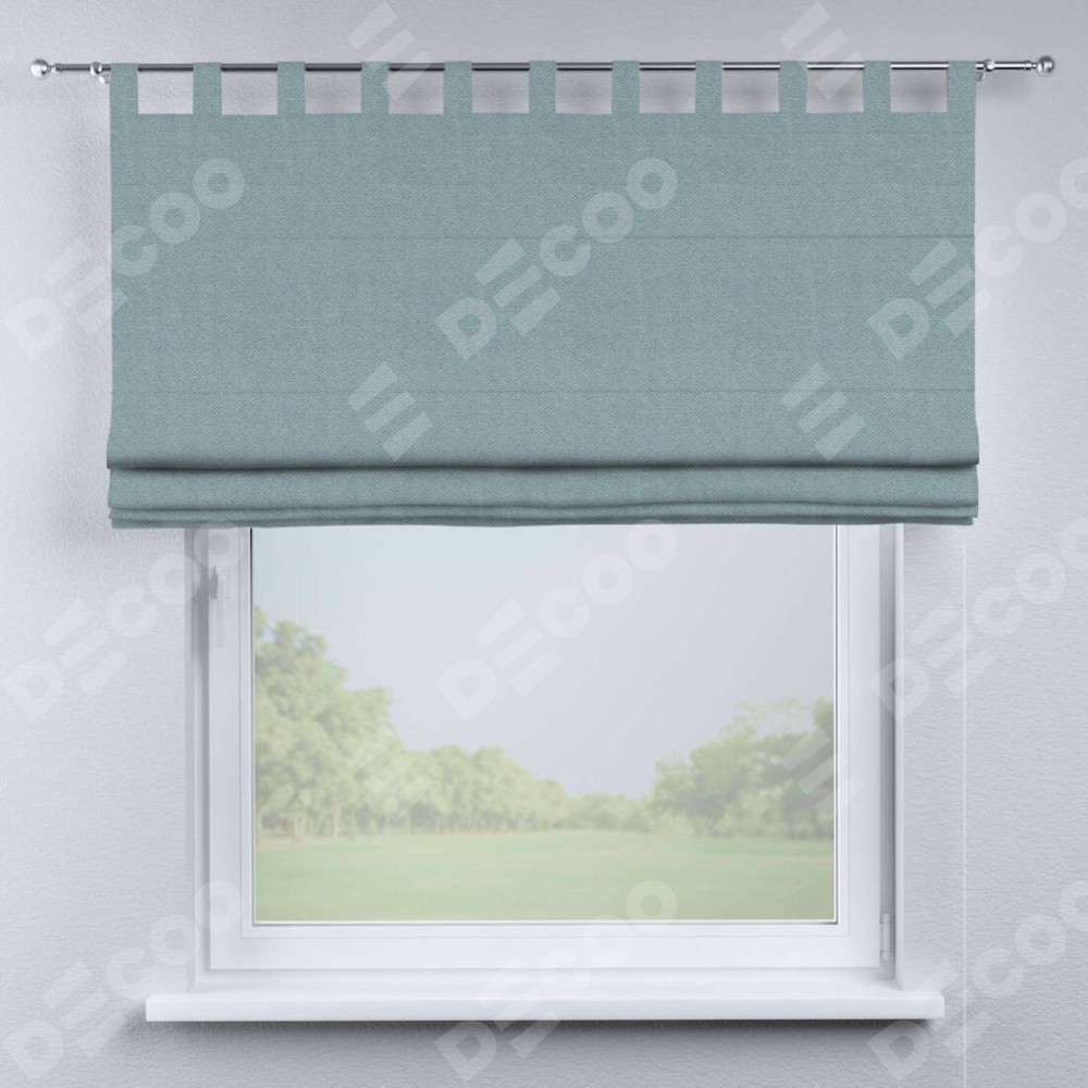 Римская штора производителя «Cortin», используется для проёма, пошита из ткани блэкаут тиснение с блеском синий, артикул ткани 34625. Изнаночная сторона материала черного цвета, что обеспечивает необходимую светонепроницаемость. Данная модель пошита на петлях, комплектуется на выбор круглым карнизом и подходит для монтажа на стену. Римская штора на петлях имеет простую систему регулировки высоты, отличительным преимуществом данной модели является простой способ монтажа. Достаточно повесить ее на трубу и штора готова!
