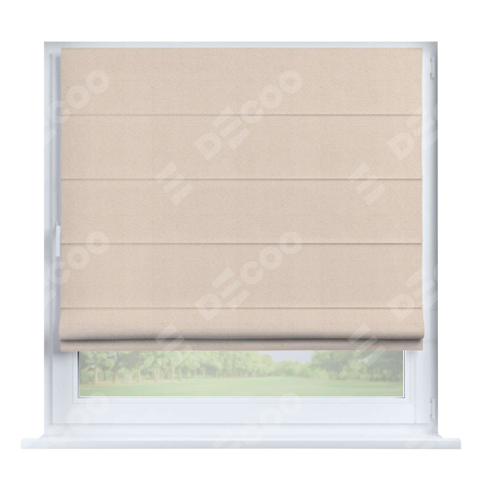 Римская штора производителя «Cortin», устанавливается на створку окна, пошита из ткани блэкаут тиснение с блеском розовая пудра, артикул 34632. Изнаночная сторона материала черного цвета, что обеспечивает необходимую светонепроницаемость. Штора шьётся по индивидуальным размерам, для данного типа римской шторы возможная ширина от 35 до 150 см., высота до 250 см.