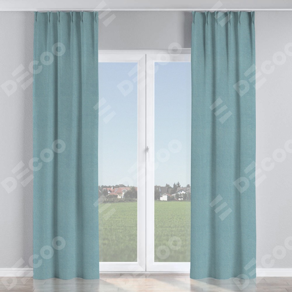 Комплект прямых штор, от производителя «Cortin», пошиты из ткани блэкаут с блеском синий, артикул ткани 34625. С изнаночной стороны в верхней части штор пристрачивается шторная лента с декоративными складками «Кустик». Обратная сторона основного материала черного цвета, что обеспечивает необходимую светонепроницаемость. Для создания элегантных складок прямые шторы шьются по стандарту с коэффициентом 1:2 (на 100 см. ширины проёма 200 см. ширины ткани).