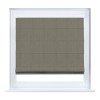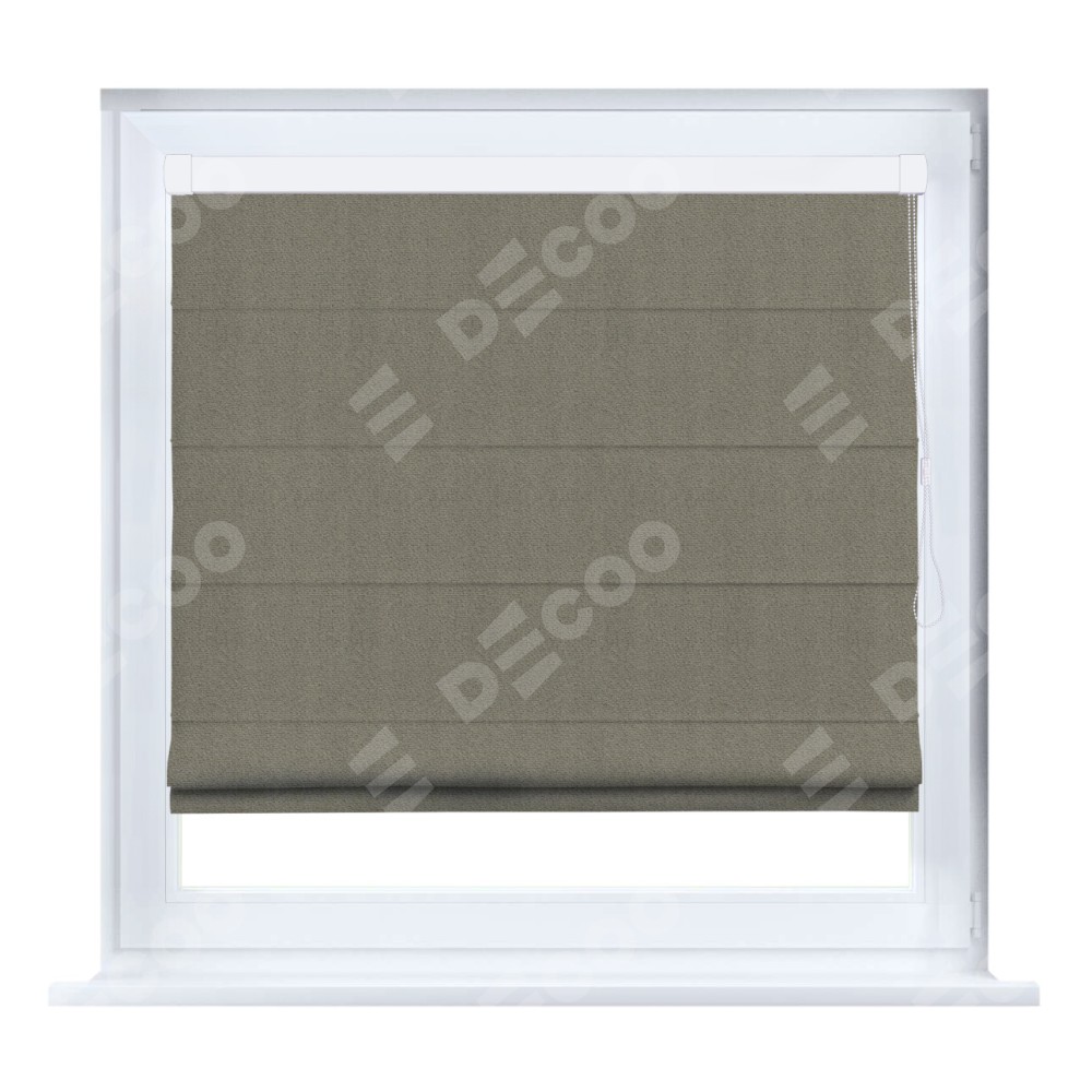 Римская штора кассетного типа, производителя «Cortin», устанавливается только на пластиковые окна и прилегает к стеклопакету, пошита из ткани из ткани блэкаут тиснение с блеском графитовый, артикул 34648. Изнаночная сторона материала черного цвета, что обеспечивает необходимую светонепроницаемость.