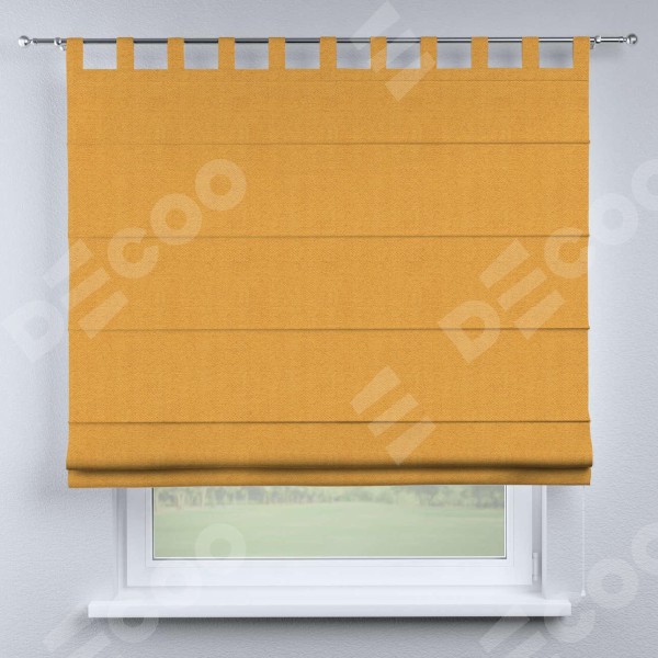 Римская штора производителя «Cortin», используется для проёма, пошита из ткани блэкаут тиснение с блеском золотой, артикул ткани 34626. Изнаночная сторона материала черного цвета, что обеспечивает необходимую светонепроницаемость. Данная модель пошита на петлях, комплектуется на выбор круглым карнизом и подходит для монтажа на стену. Римская штора на петлях имеет простую систему регулировки высоты, отличительным преимуществом данной модели является простой способ монтажа. Достаточно повесить ее на трубу и штора готова!