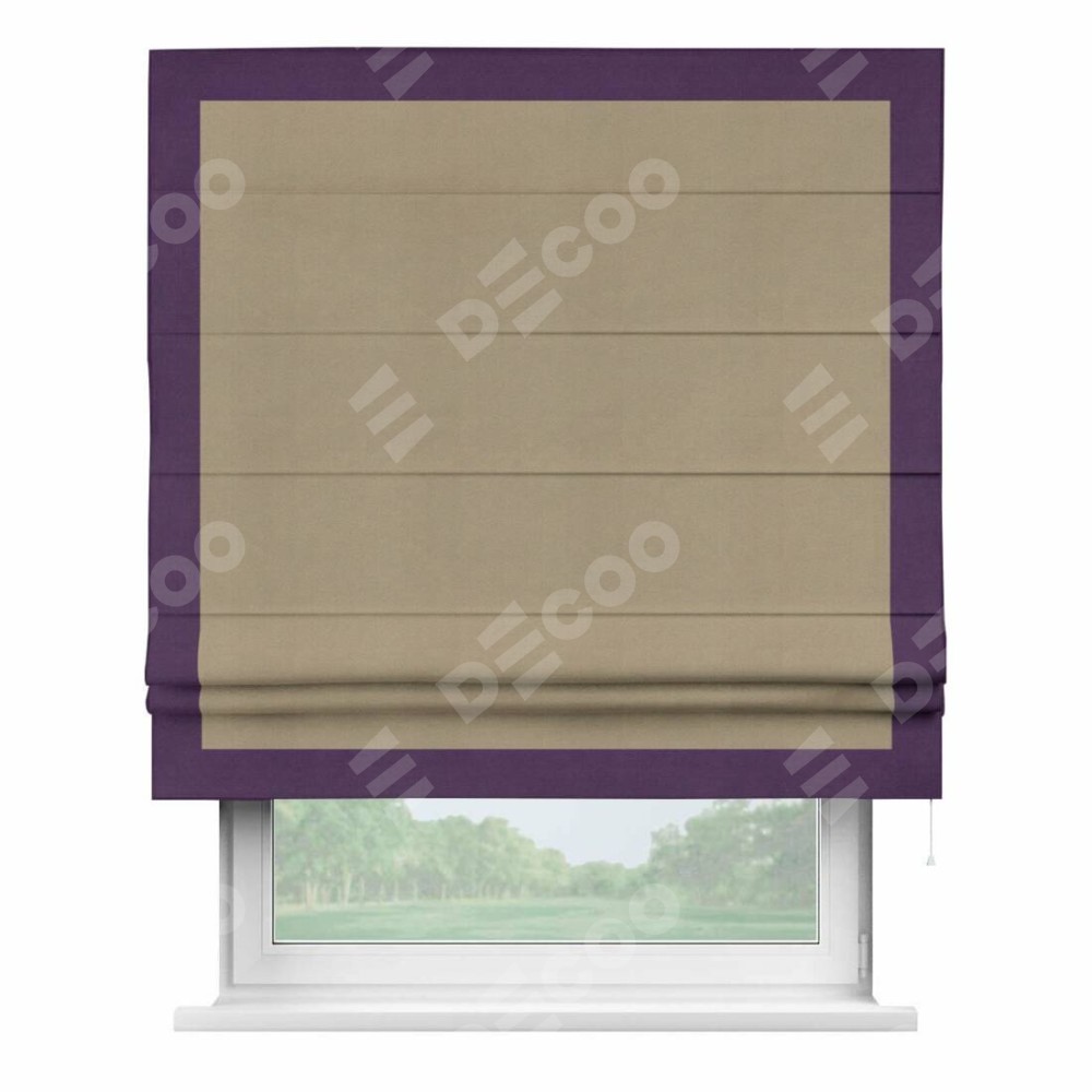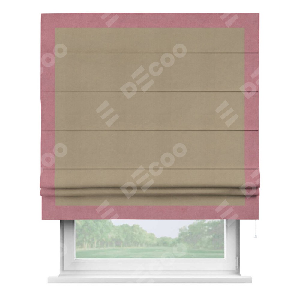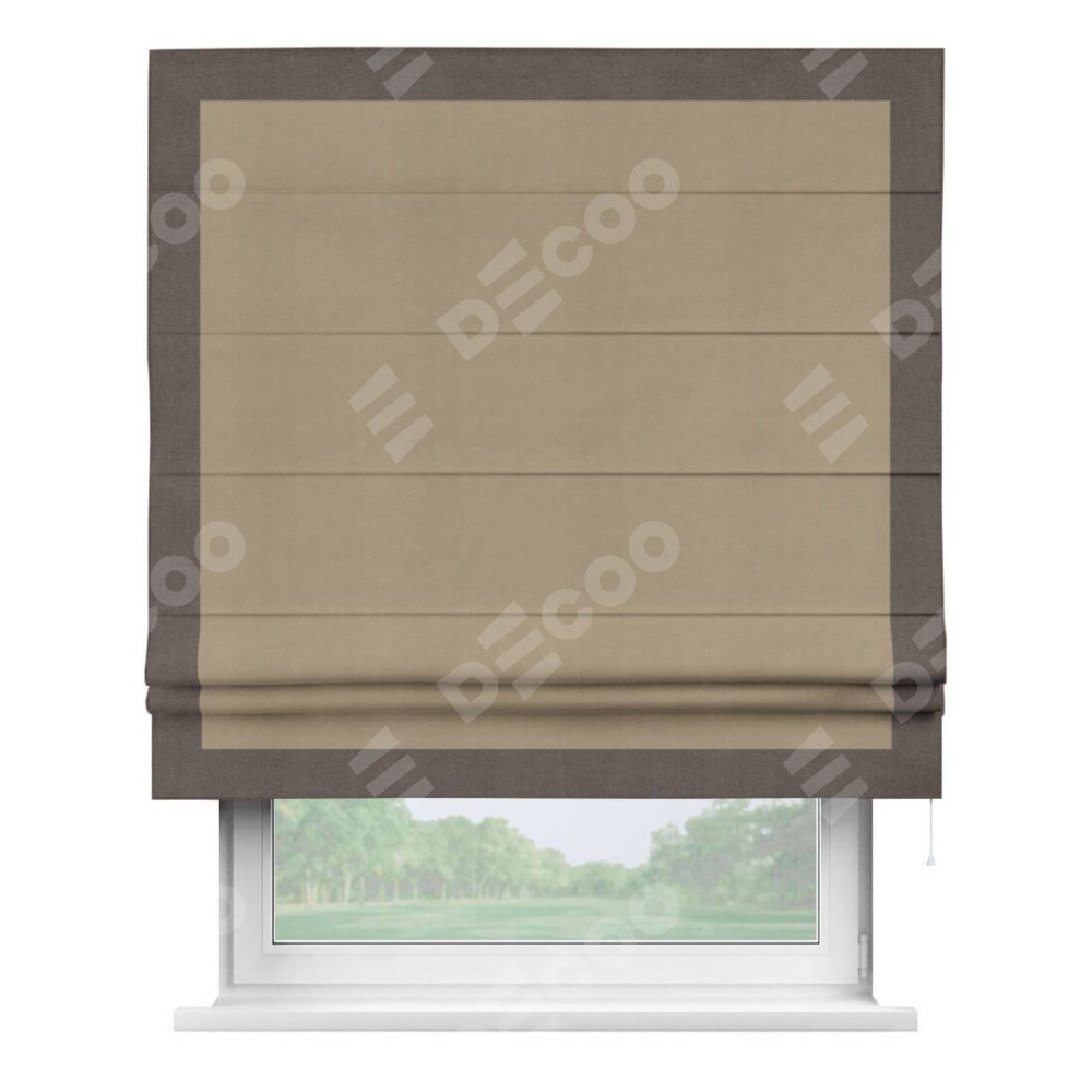 Римская штора «Кортин» с кантом Чесс, для проема, ткань вельвет кофейный