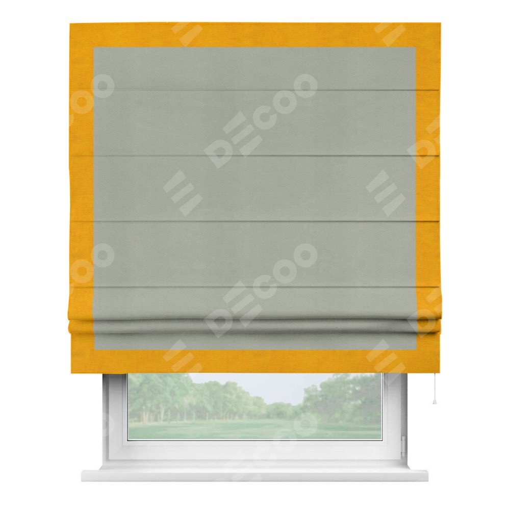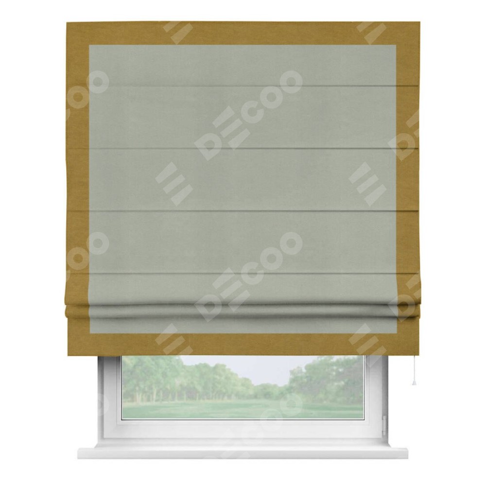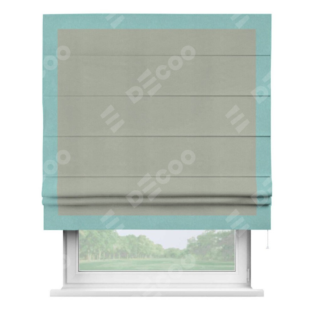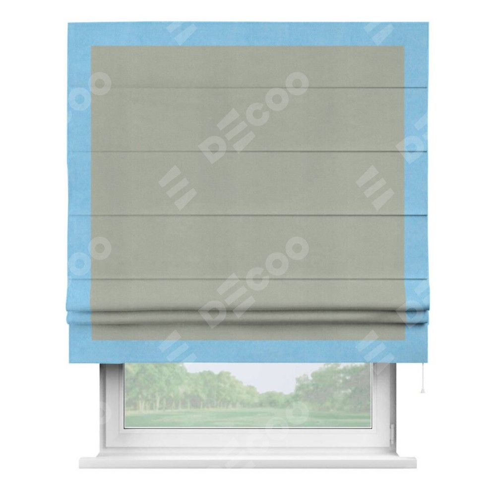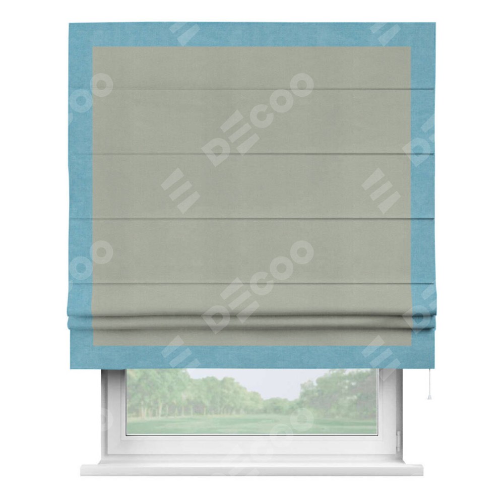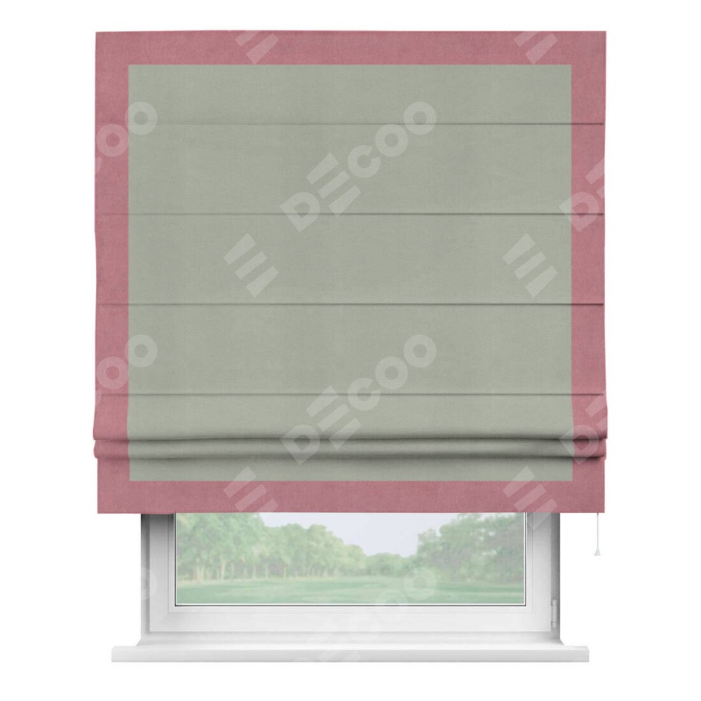 Римская штора «Кортин» с кантом Чесс, для проема, ткань вельвет cветло-серый