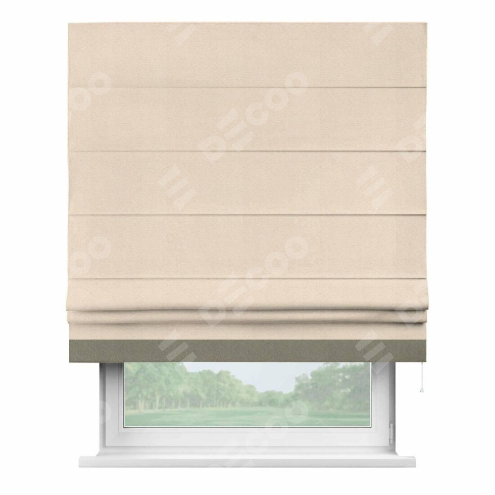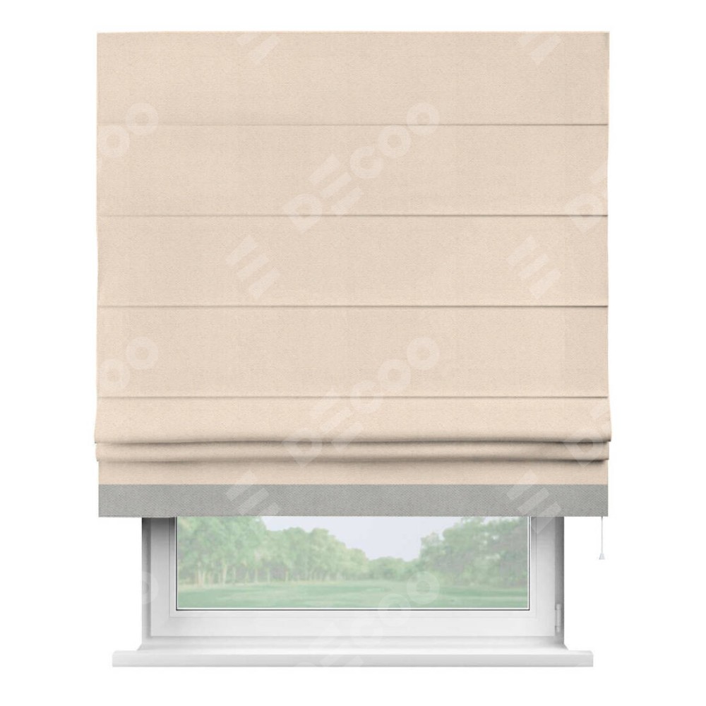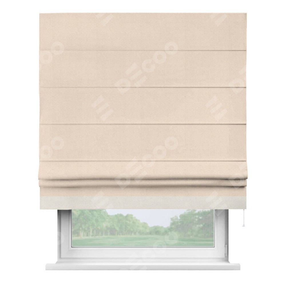 Римская штора производителя «Cortin», используется для проёма, пошита из ткани блэкаут с блеском розовая пудра, артикул 34632. Отделка шторы кантом «Джестер», ткань для канта используется из блэкаута с блеском разной расцветки на выбор. Изнаночная сторона материала черного цвета, что обеспечивает необходимую светонепроницаемость. Имеет универсальный механизм и подходит для монтажа: на потолок, на стену и в нишу.