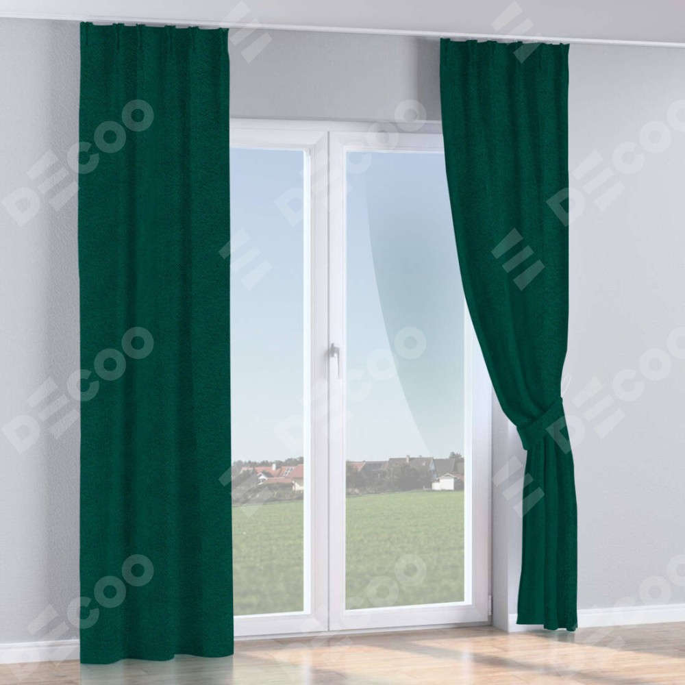 Комплект прямых штор, от производителя «Cortin», пошиты из ткани cotton блэкаут изумруд, артикул ткани 35311. С изнаночной стороны в верхней части штор пристрачивается шторная лента с декоративными складками «Кустик». Для создания элегантных складок прямые шторы шьются по стандарту с коэффициентом 1:2 (на 100 см. ширины проёма 200 см. ширины ткани).