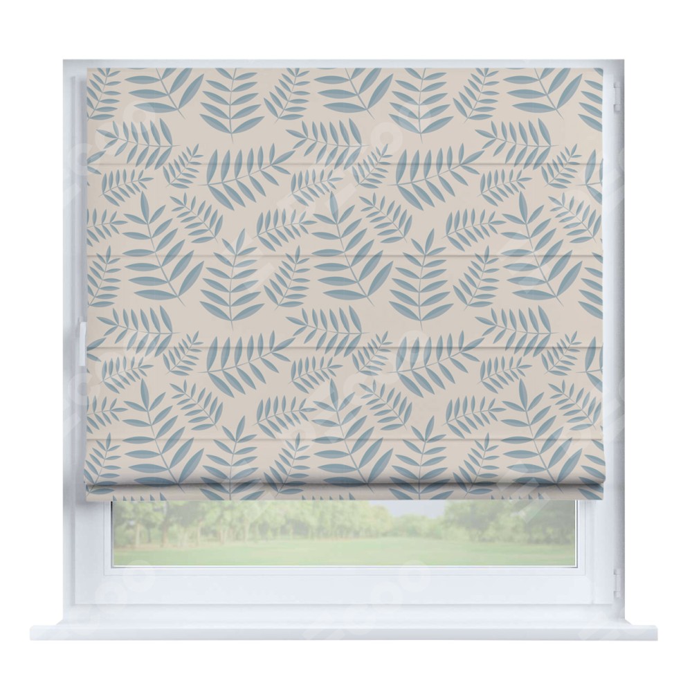 Римская штора производителя «Cortin», устанавливается на створку окна, пошита из ткани блэкаут с нанесением сублимационной печати «Веточка с листочками». Штора шьётся по индивидуальным размерам, для данного типа римской шторы возможная ширина от 35 до 150 см., высота до 250 см.