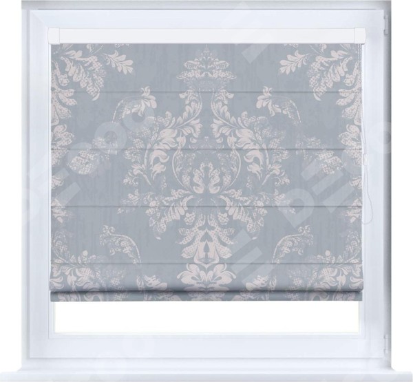 Римская штора производителя «Cortin», устанавливается на створку окна, пошита из ткани блэкаут с нанесением сублимационной печати «Винтажный узор серый». Штора шьётся по индивидуальным размерам, для данного типа римской шторы возможная ширина от 35 до 150 см., высота до 250 см.