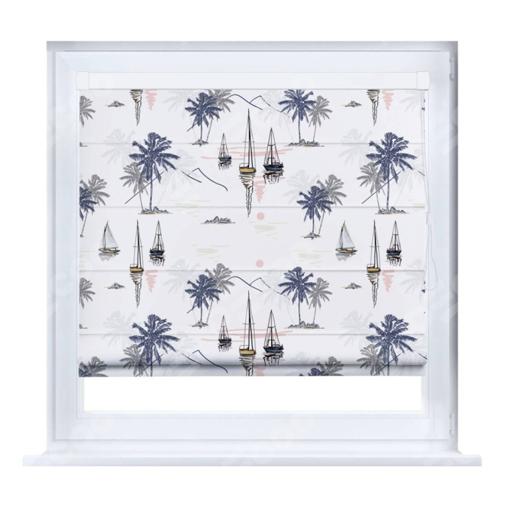 Римская штора производителя «Cortin», устанавливается на створку окна, пошита из ткани блэкаут с нанесением сублимационной печати «Морское путешествие». Штора шьётся по индивидуальным размерам, для данного типа римской шторы возможная ширина от 35 до 150 см., высота до 250 см.