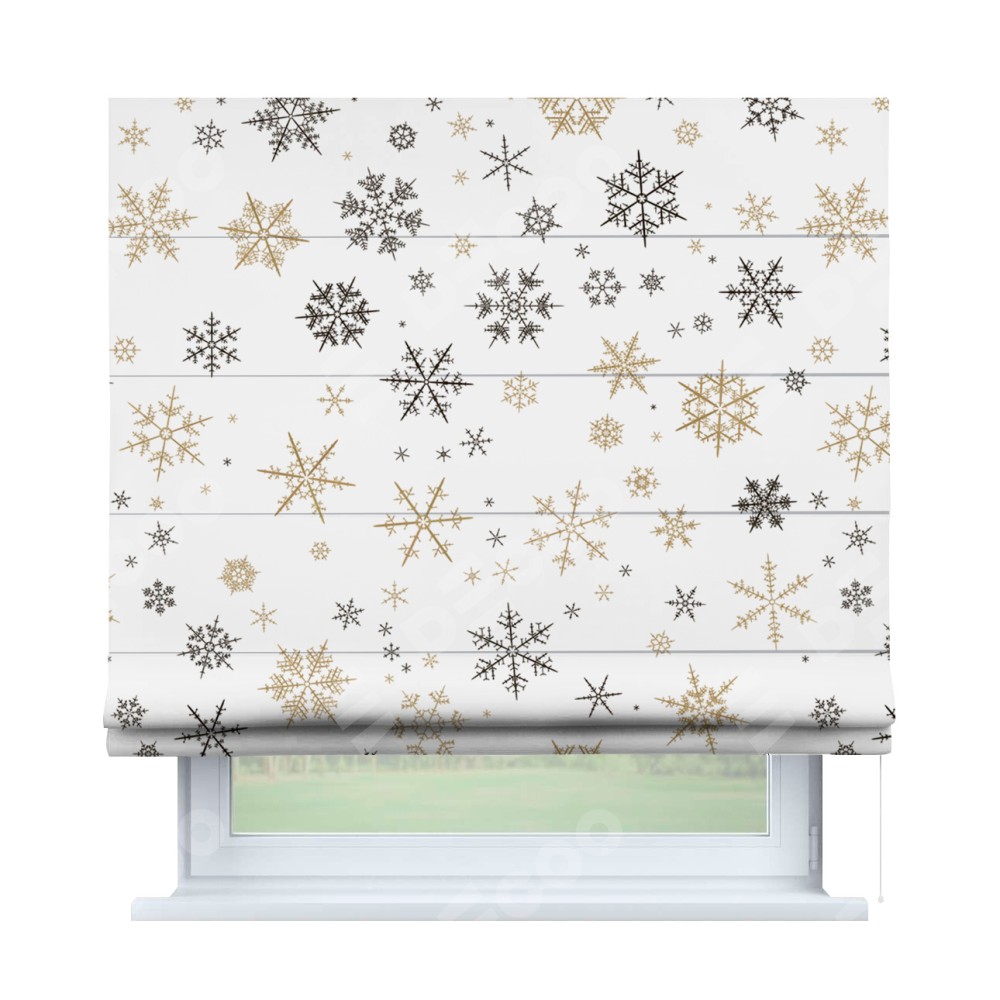 Римская штора производителя «Cortin», используется для проёма, пошита из ткани блэкаут с нанесением сублимационной печати «Зимняя метель». Имеет универсальный механизм и подходит для монтажа: на потолок, на стену и в нишу.