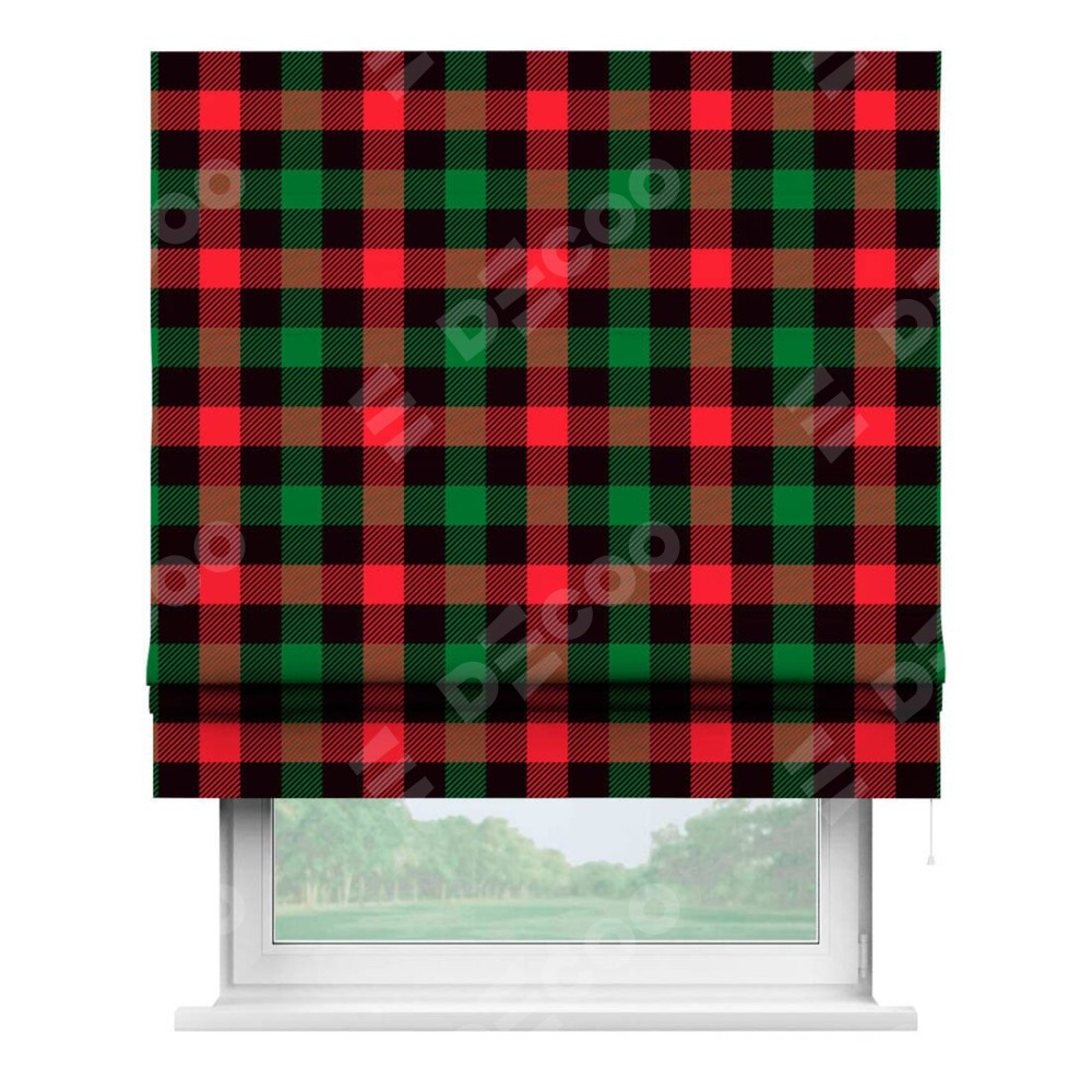 Римская штора производителя «Cortin», используется для проёма, пошита из ткани блэкаут с нанесением сублимационной печати «Красочная клетка». Имеет универсальный механизм и подходит для монтажа: на потолок, на стену и в нишу.