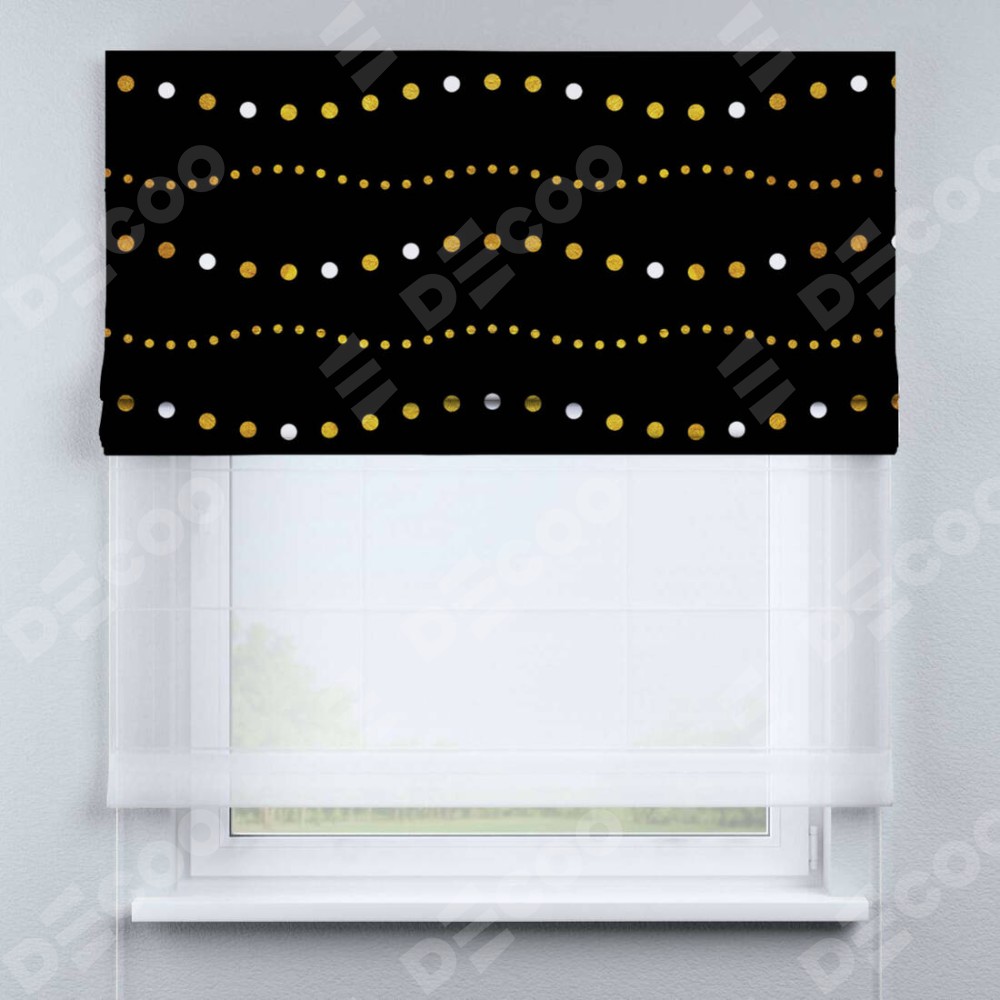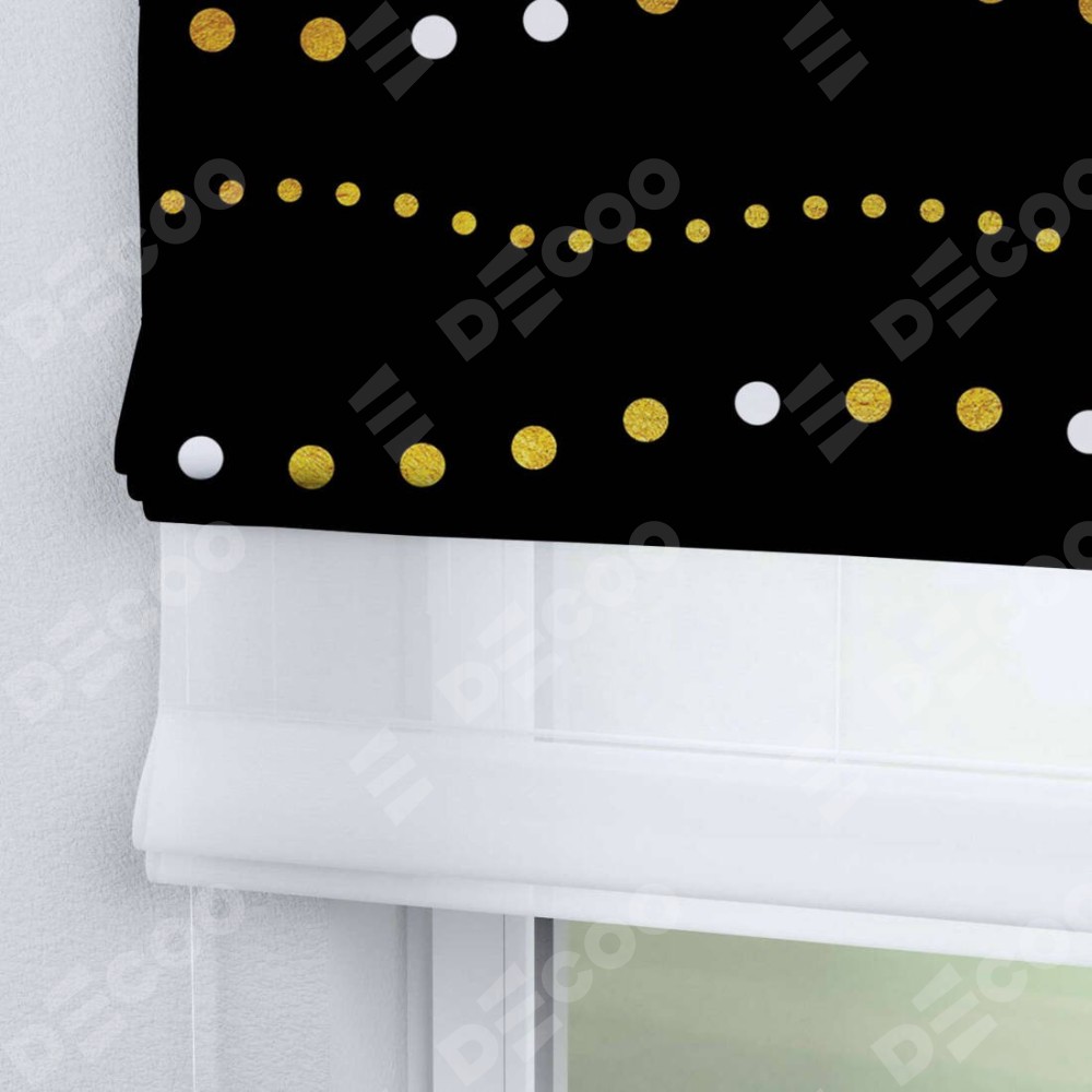 Римская штора день-ночь производителя «Cortin», используется для проёма, пошита из двух полотен, с лицевой блэкаут с нанесением сублимационной печати «Яркие огоньки», вторая ткань тюль (по стандарту комплектуется тюль белого цвета артикул V-01). Имеет универсальный механизм и подходит для монтажа: на потолок, на стену и в нишу.