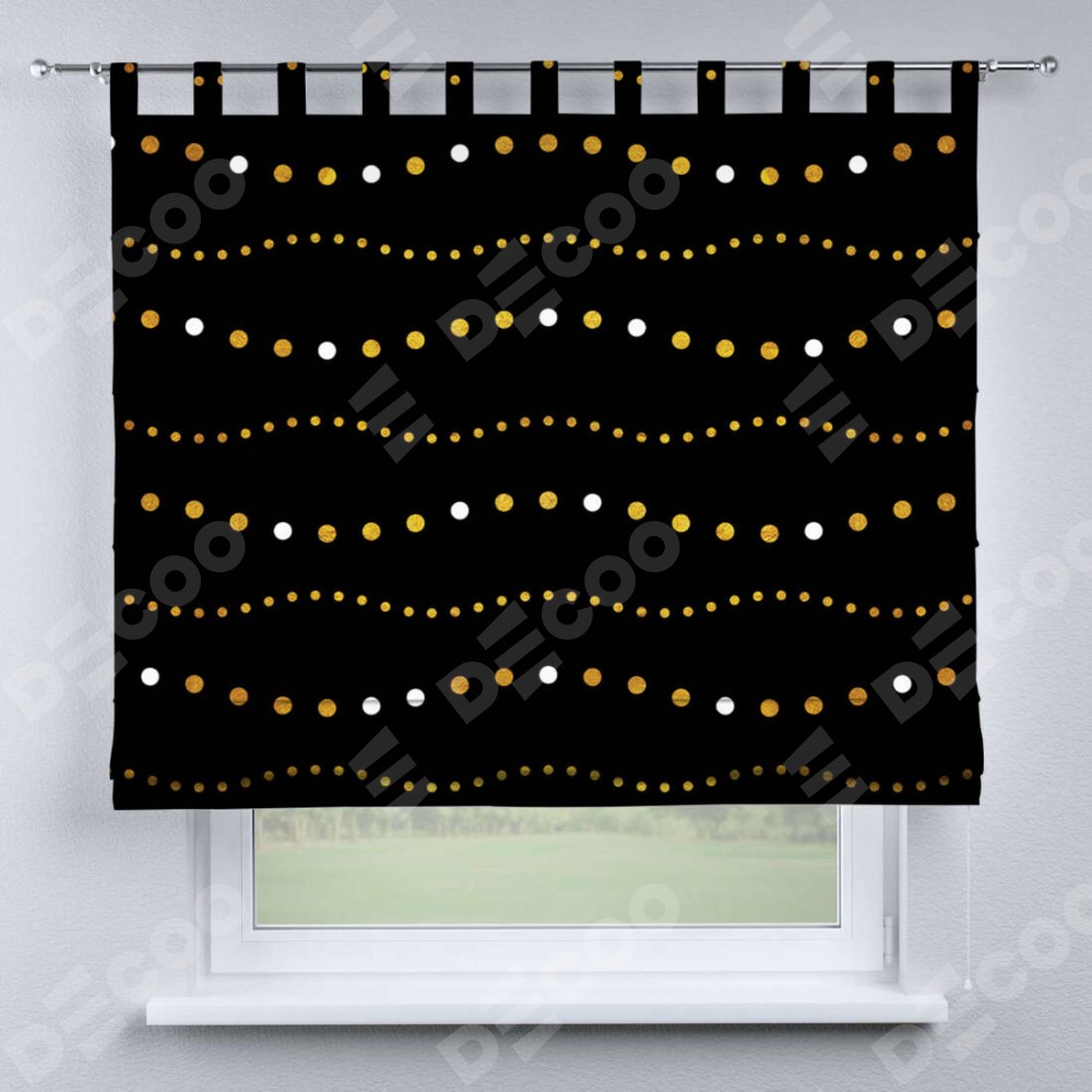 Римская штора производителя «Cortin», используется для проёма, пошита из ткани блэкаут с нанесением сублимационной печати «Яркие огоньки». Данная модель пошита на петлях, комплектуется на выбор круглым карнизом и подходит для монтажа на стену. Римская штора на петлях имеет простую систему регулировки высоты, отличительным преимуществом данной модели является простой способ монтажа. Достаточно повесить ее на трубу и штора готова!