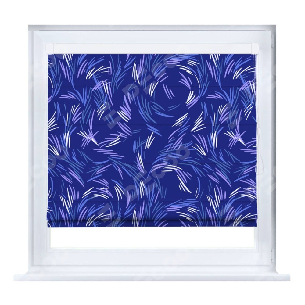 Римская штора производителя «Cortin», устанавливается на створку окна, пошита из ткани блэкаут с нанесением сублимационной печати «Синяя абстракция». Штора шьётся по индивидуальным размерам, для данного типа римской шторы возможная ширина от 35 до 150 см., высота до 250 см.