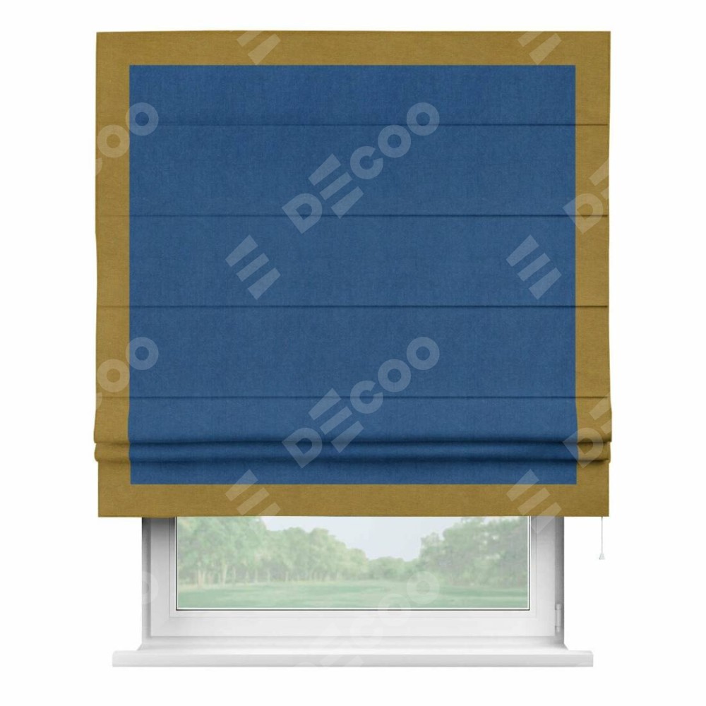 Римская штора «Кортин» с кантом Чесс, для проема, ткань вельвет синий