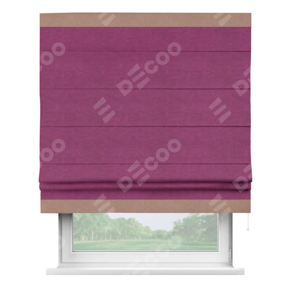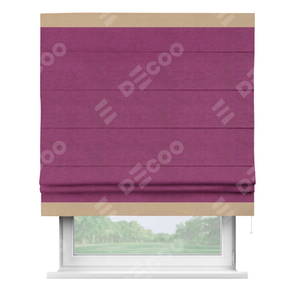 Римская штора «Кортин» с кантом Горизонт, для проема, ткань вельвет фиолетовый