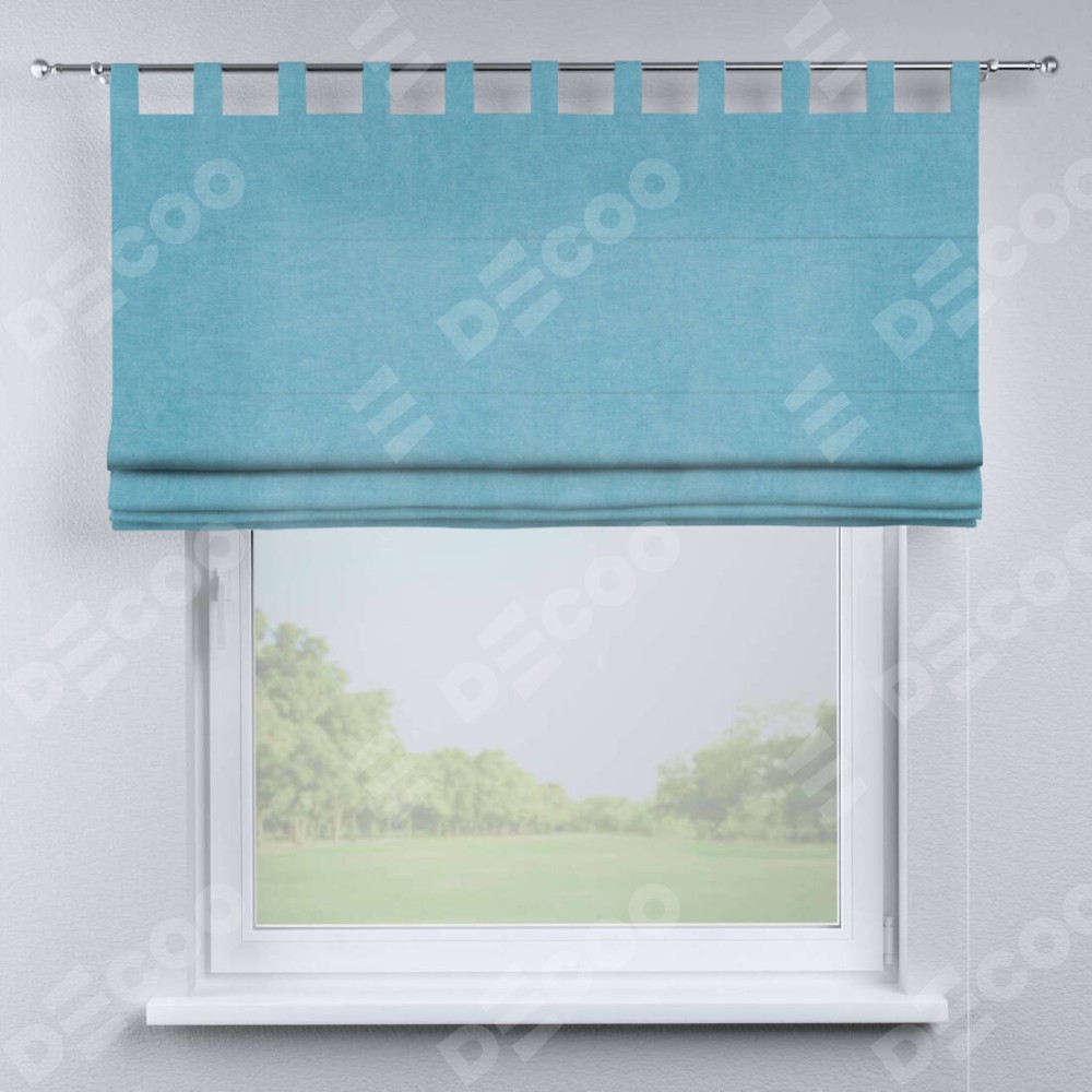 Римская штора производителя «Cortin», используется для проёма, пошита из ткани вельвет ментоловый, артикул ткани 10443. Данная модель пошита на петлях, комплектуется на выбор круглым карнизом и подходит для монтажа на стену. Римская штора на петлях имеет простую систему регулировки высоты, отличительным преимуществом данной модели является простой способ монтажа. Достаточно повесить ее на трубу и штора готова!