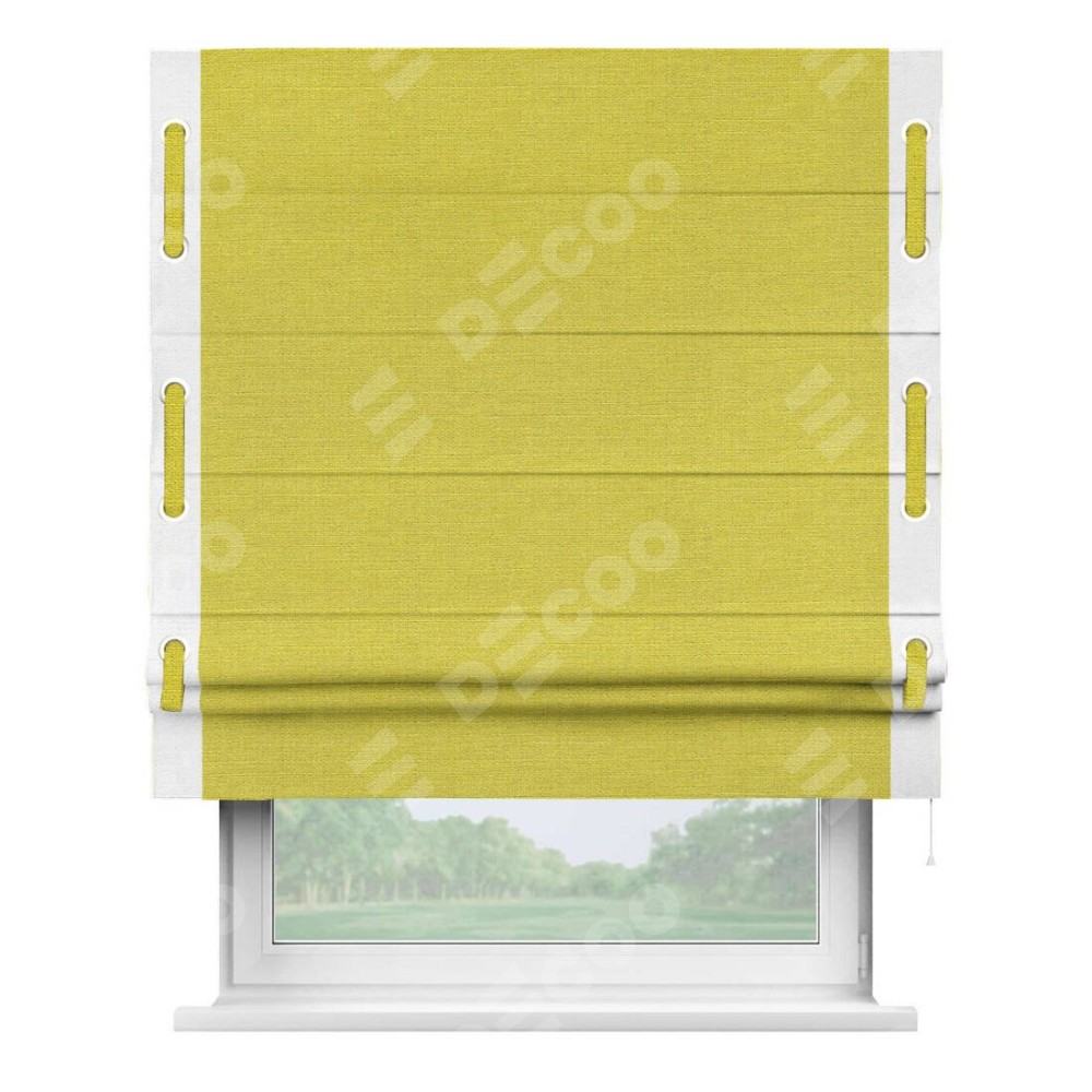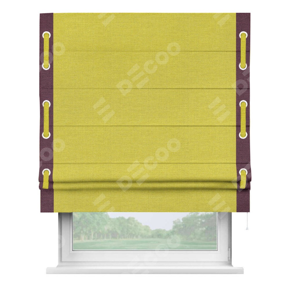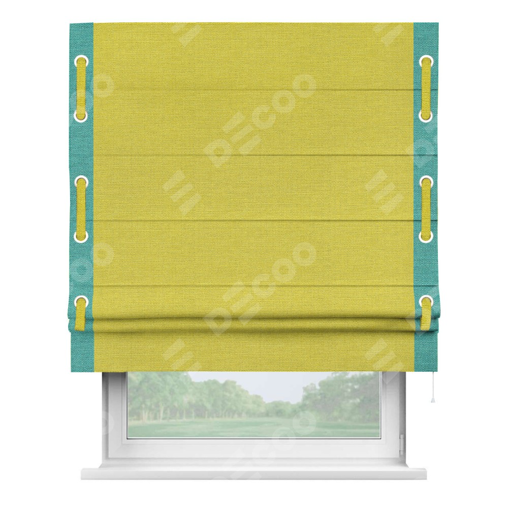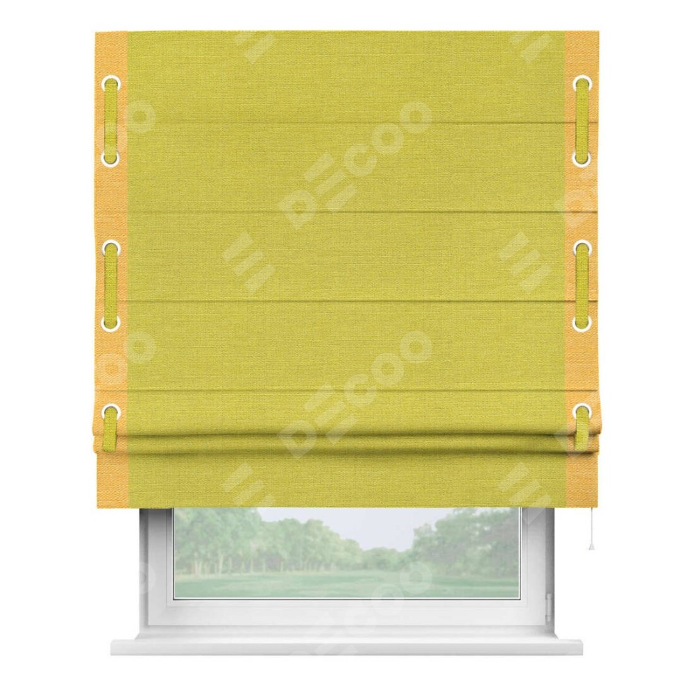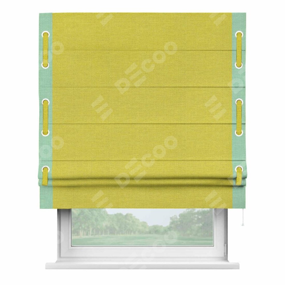Римская штора «Кортин» с кантом Стрим Дуо (люверсы с пояском), для проема, ткань лён салатовый