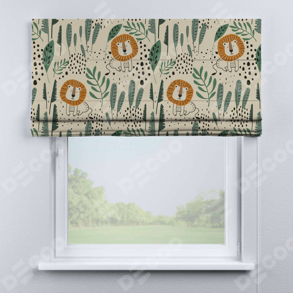 Римская штора «Кортин» для проема «Лев из джунглей»