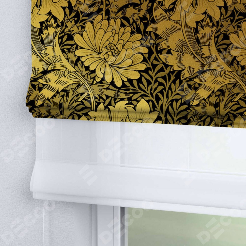 Римская штора день-ночь производителя «Cortin», используется для проёма, пошита из двух полотен, с лицевой блэкаут с нанесением сублимационной печати «Ремикс морриса», вторая ткань тюль (по стандарту комплектуется тюль белого цвета артикул V-01). Имеет универсальный механизм и подходит для монтажа: на потолок, на стену и в нишу.