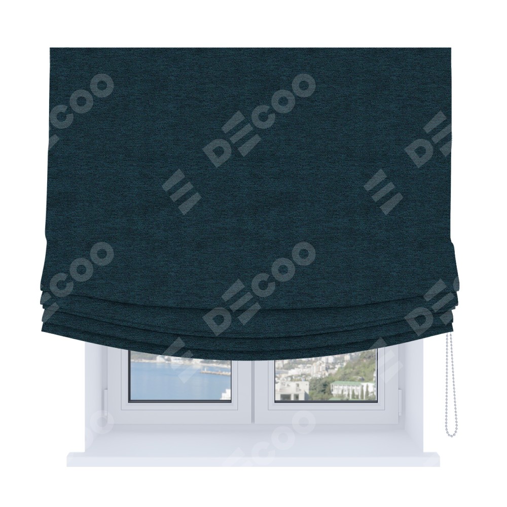 Римская штора Soft производителя «Cortin», используется для проёма, пошита из ткани твид блэкаут глубокий синий, артикул ткани 21590. Имеет универсальный механизм и подходит для монтажа: на потолок, на стену и в нишу. В отличие от стандартных римских штор, римская штора Soft не имеет горизонтальных вставок и нижнего отвеса. Это позволяет ткани произвольно драпироваться в свободные мягкие складки.