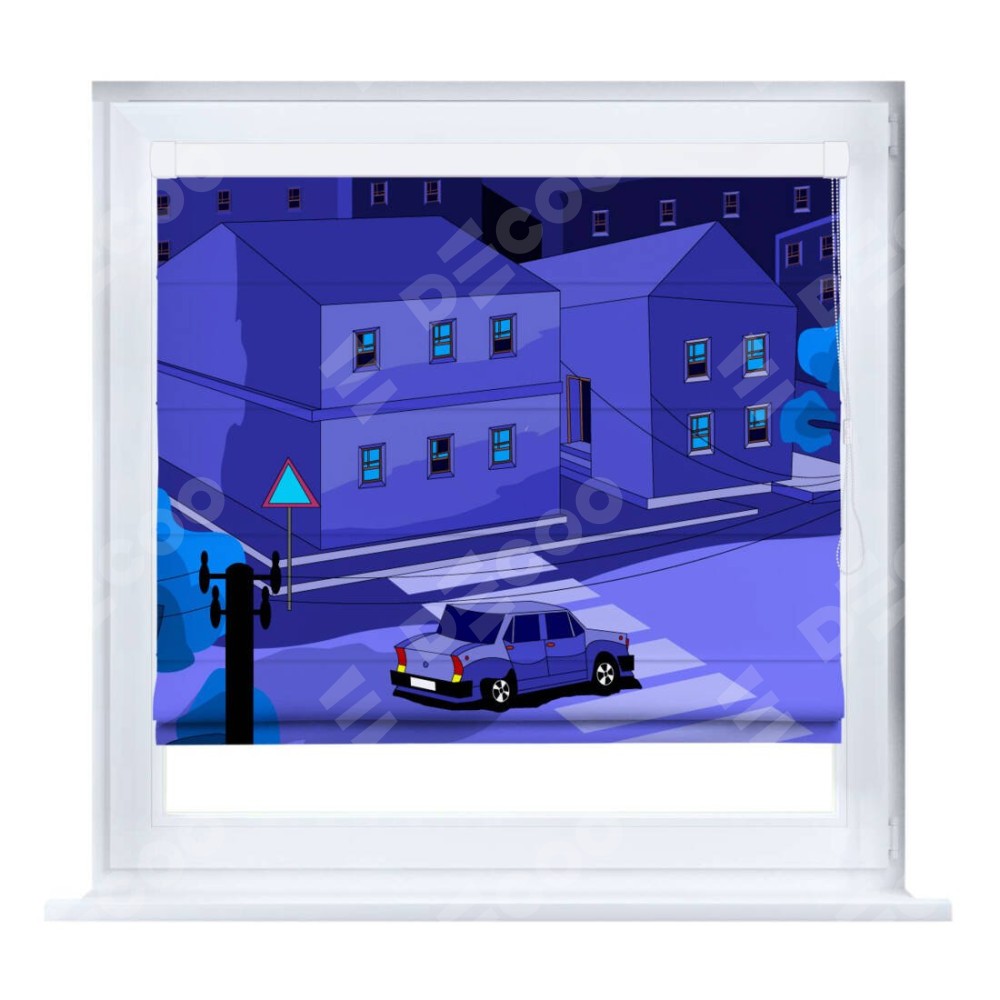 Римская штора производителя «Cortin», устанавливается на створку окна, пошита из ткани блэкаут с нанесением сублимационной печати «Ночные улицы». Штора шьётся по индивидуальным размерам, для данного типа римской шторы возможная ширина от 35 до 150 см., высота до 250 см.
