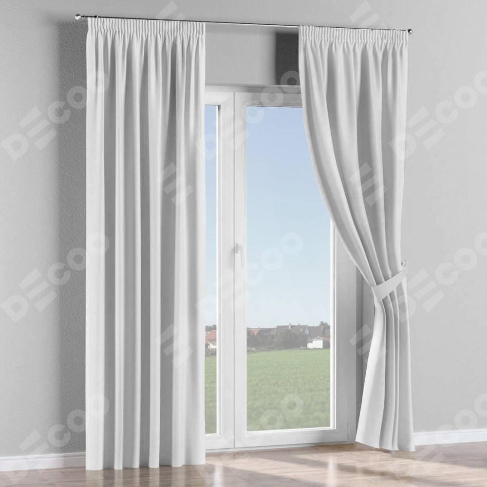 Комплект прямых штор, от производителя «Cortin», пошиты из ткани вельвет белоснежный, артикул ткани 19192. С изнаночной стороны в верхней части штор пристрачивается шторная лента с декоративными складками «Карандаш». Для создания элегантных складок прямые шторы шьются по стандарту с коэффициентом 1:2 (на 100 см. ширины проёма 200 см. ширины ткани).