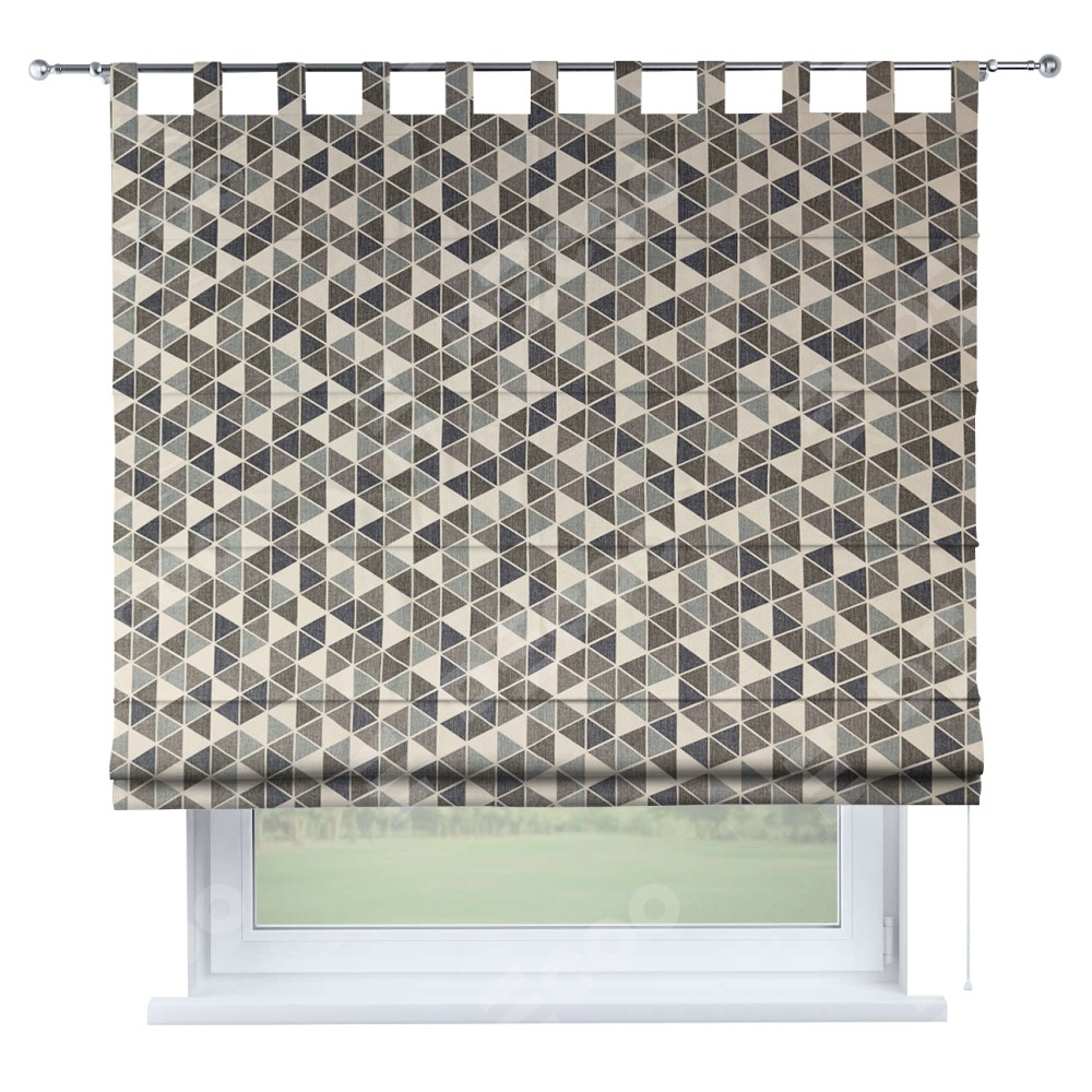 Римская штора производителя «Cortin», используется для проёма, пошита из ткани димаут «Треугольники синие», артикул ткани 23022. Данная модель пошита на петлях, комплектуется на выбор круглым карнизом и подходит для монтажа на стену. Римская штора на петлях имеет простую систему регулировки высоты, отличительным преимуществом данной модели является простой способ монтажа. Достаточно повесить ее на трубу и штора готова!