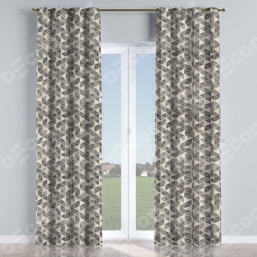 Комплект прямых штор, от производителя «Cortin», пошиты из ткани димаут «Треугольники синие», артикул ткани 23022. Данная модель пошита на люверсах, комплектуется на выбор круглым карнизом и подходит для монтажа на стену или потолок. Прямые шторы на люверсах шьются по стандарту с коэффициентом 1/2 (на 100 см. ширины проёма 200 см. ширины ткани), отличительным преимуществом данной модели является простой способ монтажа. Достаточно повесить ее на трубу и штора готова!