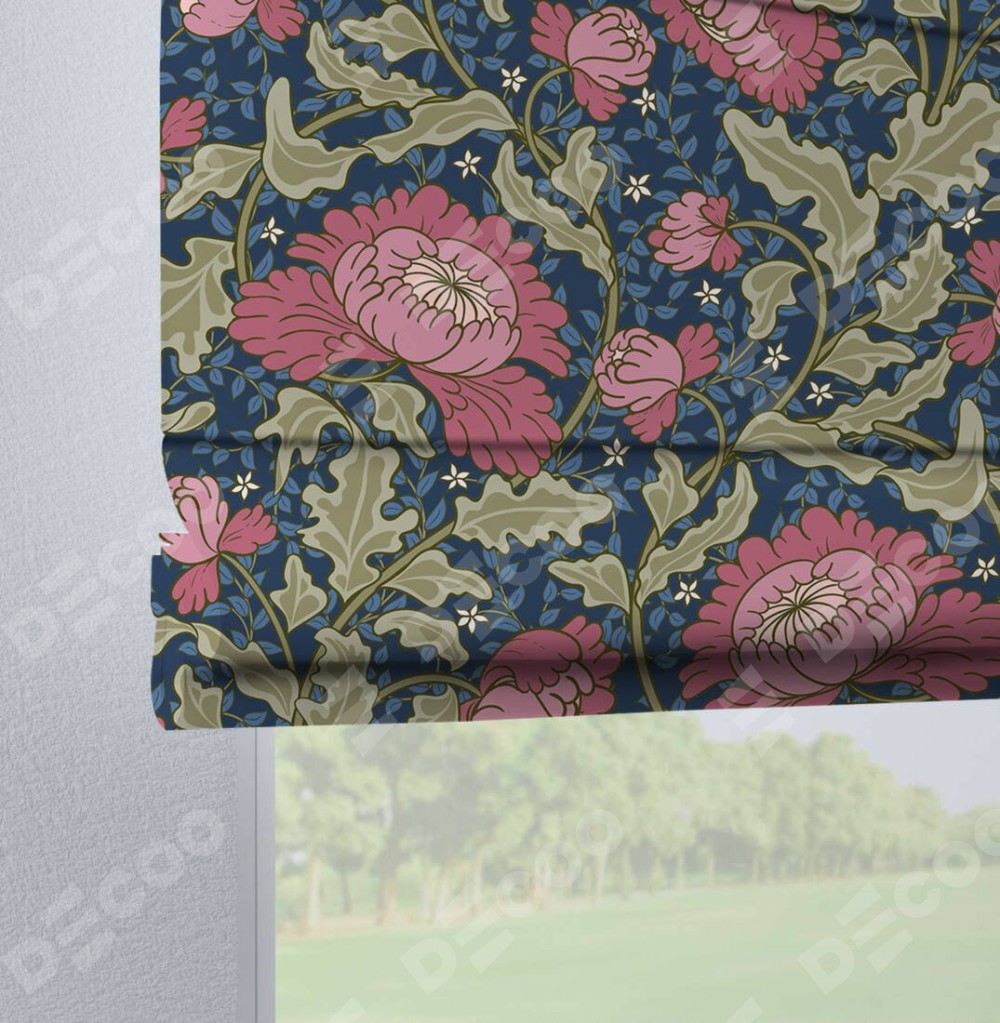 Римская штора «Кортин» на петлях «Розовые цветы»