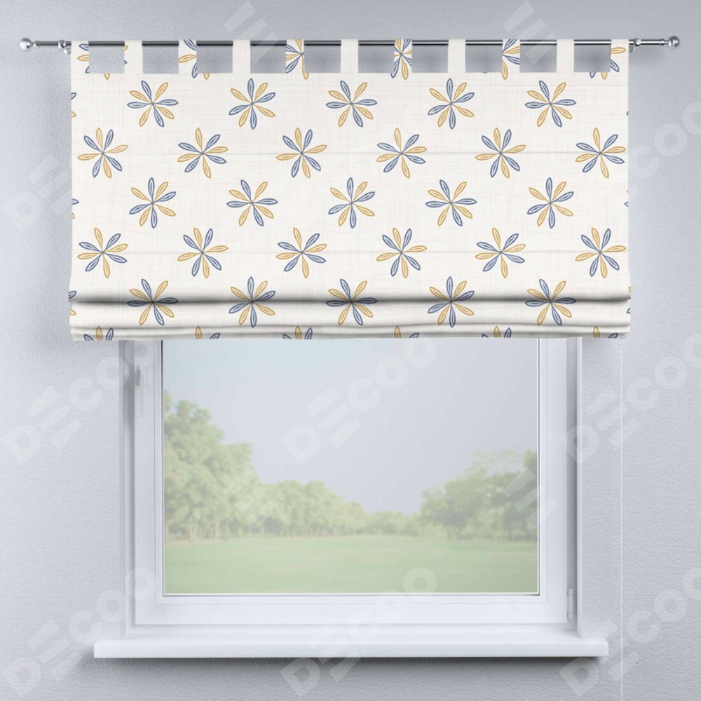 Римская штора производителя «Cortin», используется для проёма, пошита из ткани блэкаут с нанесением сублимационной печати «Ромашки кантри». Данная модель пошита на петлях, комплектуется на выбор круглым карнизом и подходит для монтажа на стену. Римская штора на петлях имеет простую систему регулировки высоты, отличительным преимуществом данной модели является простой способ монтажа. Достаточно повесить ее на трубу и штора готова!