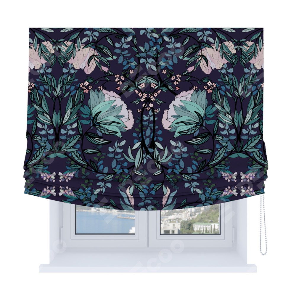 Римская штора Soft с мягкими складками, «Цветочный индиго»