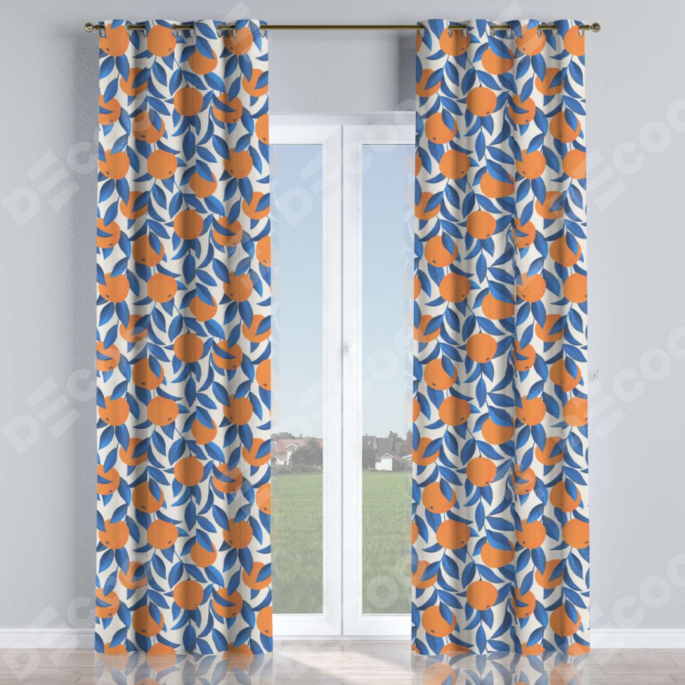 Комплект прямых штор, от производителя «Cortin», пошиты из ткани блэкаут с нанесением сублимационной печати «Апельсиновое настроение». Данная модель пошита на люверсах, комплектуется на выбор круглым карнизом и подходит для монтажа на стену или потолок. Прямые шторы на люверсах шьются по стандарту с коэффициентом 1/2 (на 100 см. ширины проёма 200 см. ширины ткани), отличительным преимуществом данной модели является простой способ монтажа. Достаточно повесить ее на трубу и штора готова!