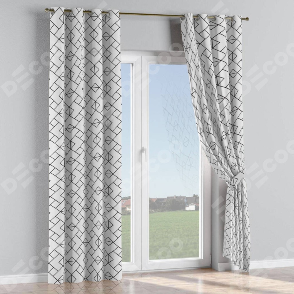 Комплект прямых штор, от производителя «Cortin», пошиты из ткани блэкаут с нанесением сублимационной печати «Геометрический орнамент». Данная модель пошита на люверсах, комплектуется на выбор круглым карнизом и подходит для монтажа на стену или потолок. Прямые шторы на люверсах шьются по стандарту с коэффициентом 1/2 (на 100 см. ширины проёма 200 см. ширины ткани), отличительным преимуществом данной модели является простой способ монтажа. Достаточно повесить ее на трубу и штора готова!