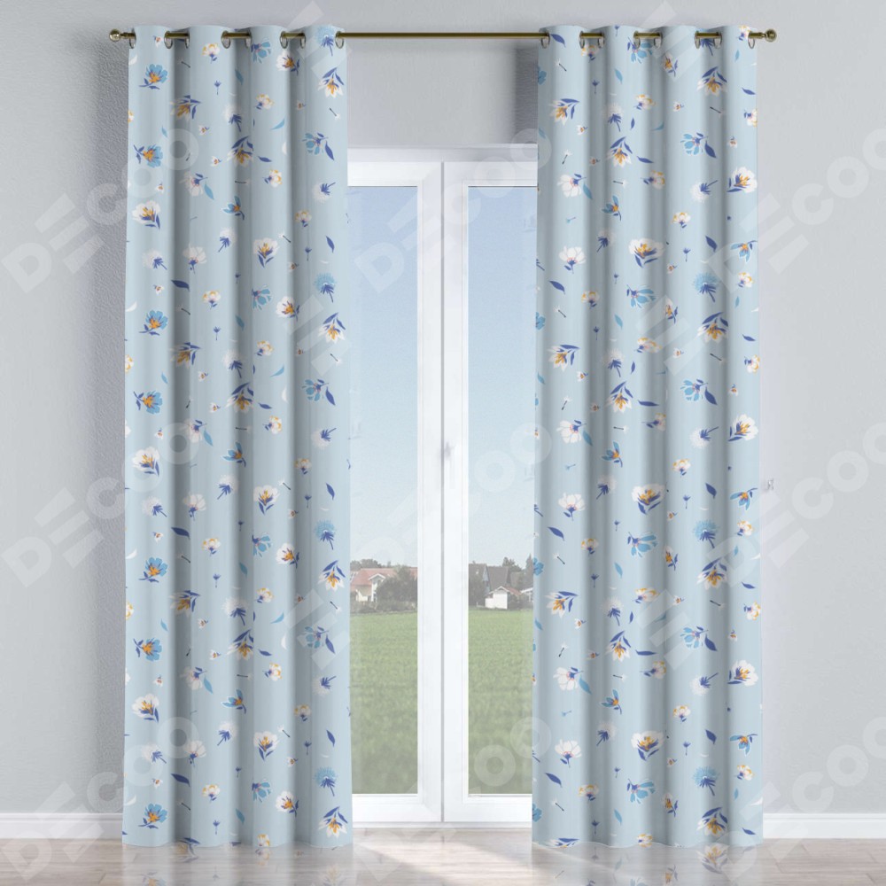 Комплект прямых штор, от производителя «Cortin», пошиты из ткани блэкаут с нанесением сублимационной печати «Голубые цветы». Данная модель пошита на люверсах, комплектуется на выбор круглым карнизом и подходит для монтажа на стену или потолок. Прямые шторы на люверсах шьются по стандарту с коэффициентом 1/2 (на 100 см. ширины проёма 200 см. ширины ткани), отличительным преимуществом данной модели является простой способ монтажа. Достаточно повесить ее на трубу и штора готова!