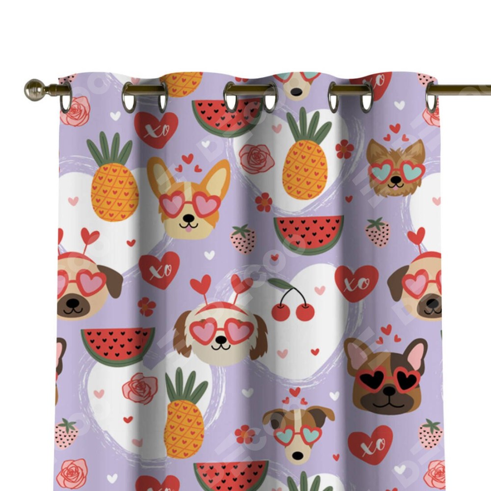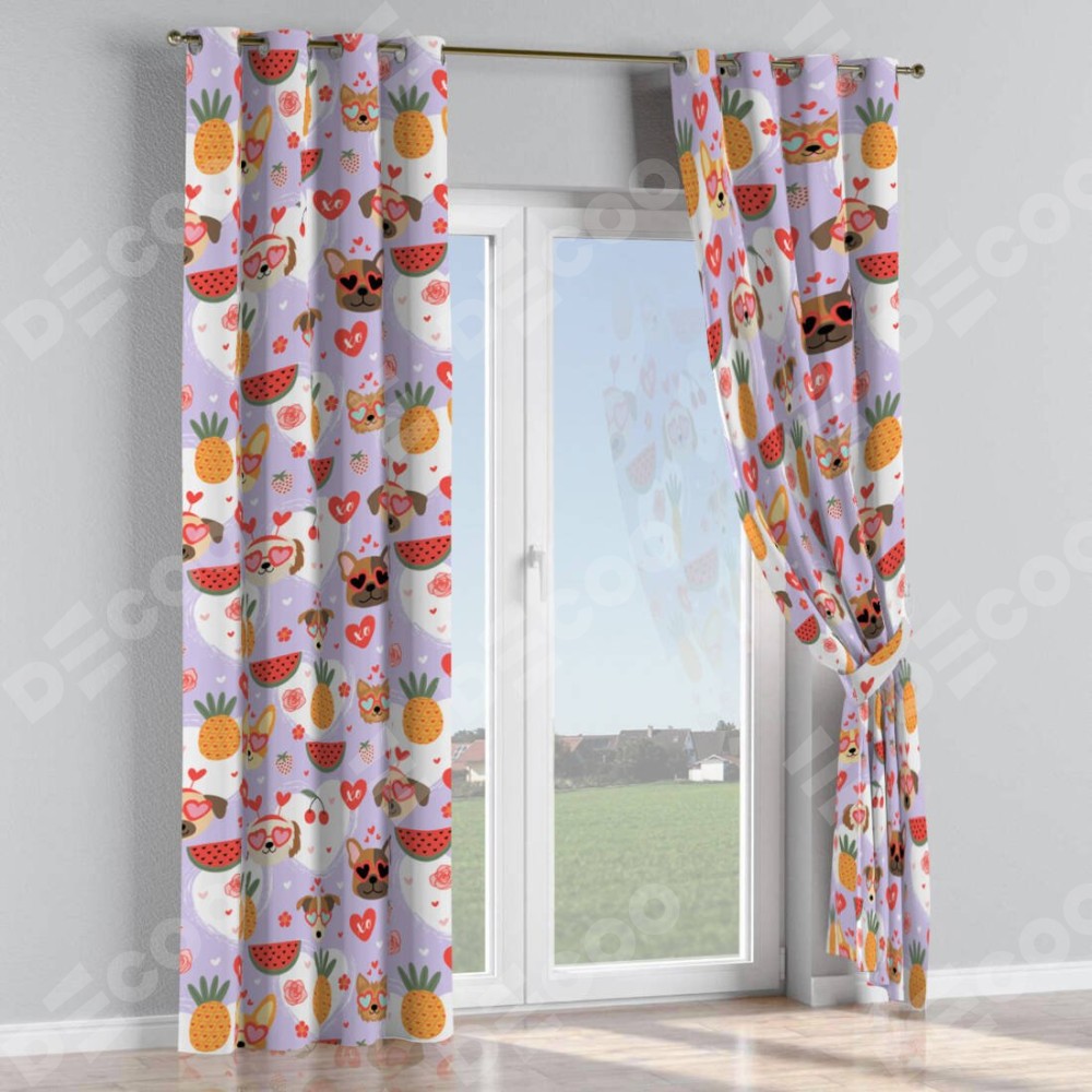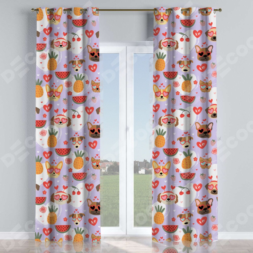 Комплект прямых штор, от производителя «Cortin», пошиты из ткани блэкаут с нанесением сублимационной печати «Забавные собачки». Данная модель пошита на люверсах, комплектуется на выбор круглым карнизом и подходит для монтажа на стену или потолок. Прямые шторы на люверсах шьются по стандарту с коэффициентом 1/2 (на 100 см. ширины проёма 200 см. ширины ткани), отличительным преимуществом данной модели является простой способ монтажа. Достаточно повесить ее на трубу и штора готова!