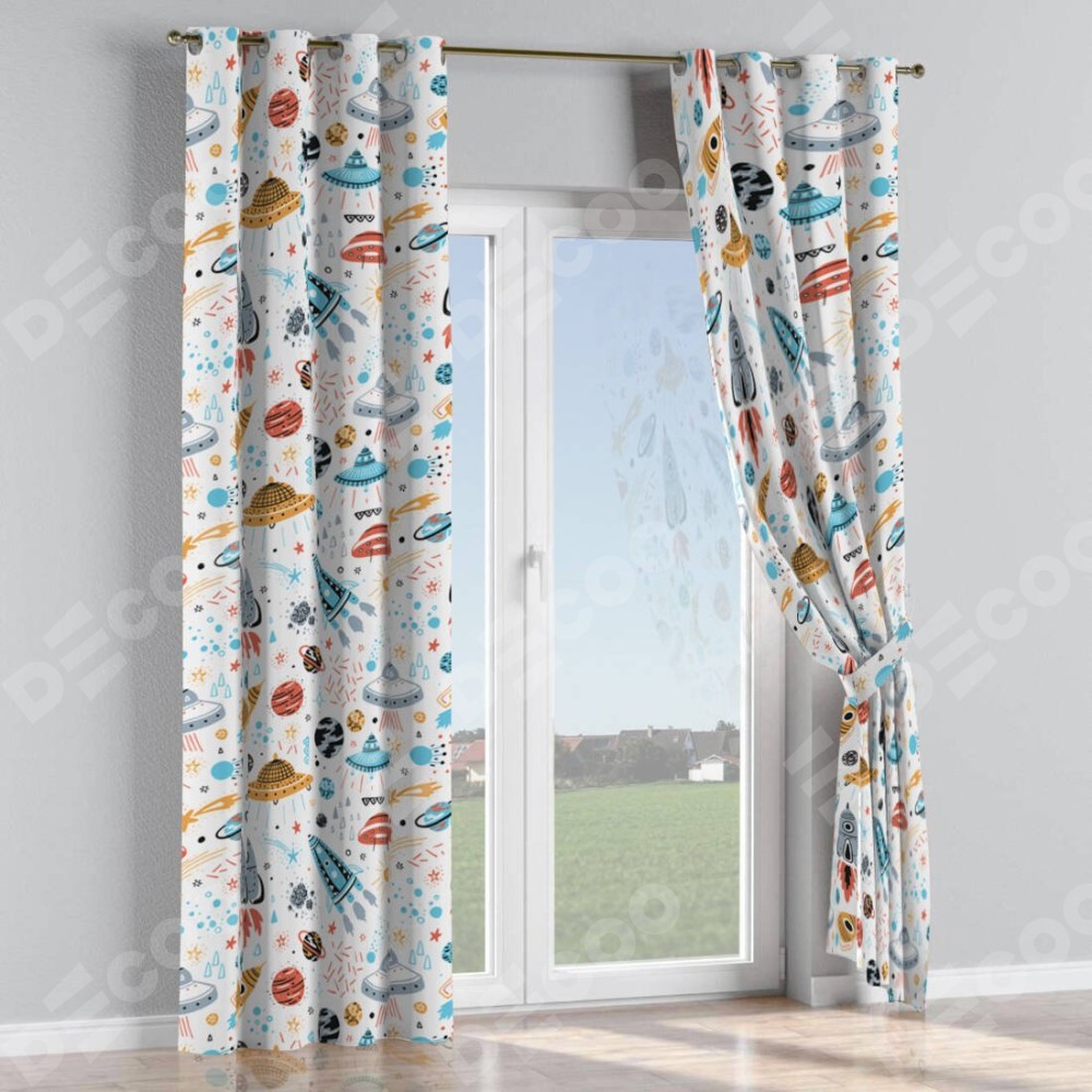 Комплект прямых штор, от производителя «Cortin», пошиты из ткани блэкаут с нанесением сублимационной печати «Космическое приключение». Данная модель пошита на люверсах, комплектуется на выбор круглым карнизом и подходит для монтажа на стену или потолок. Прямые шторы на люверсах шьются по стандарту с коэффициентом 1/2 (на 100 см. ширины проёма 200 см. ширины ткани), отличительным преимуществом данной модели является простой способ монтажа. Достаточно повесить ее на трубу и штора готова!