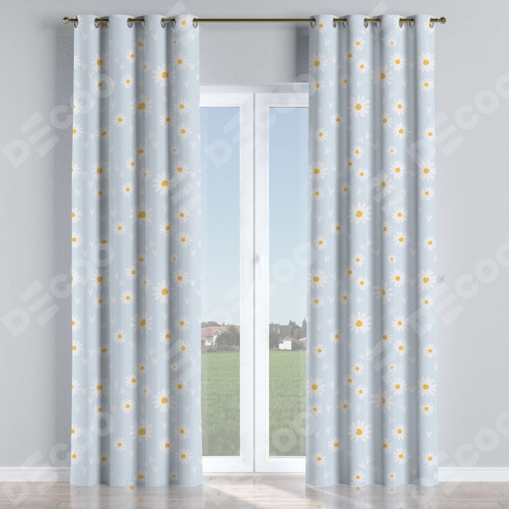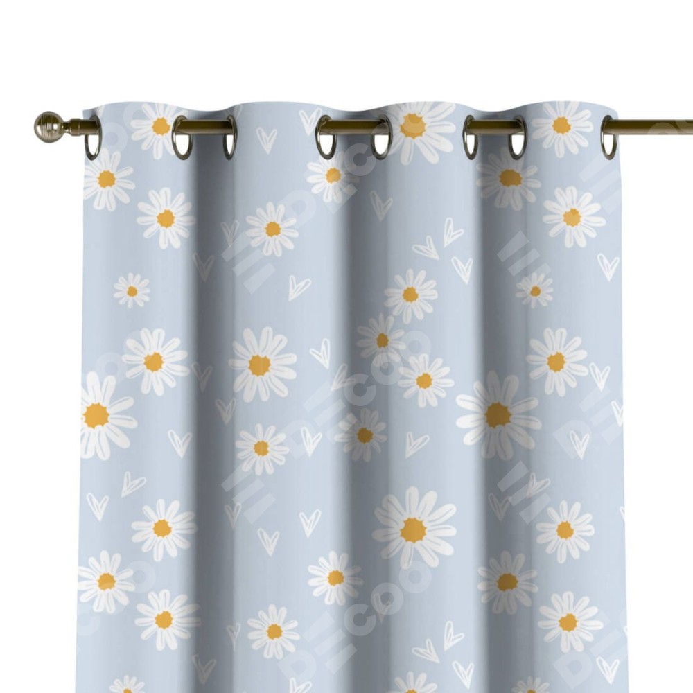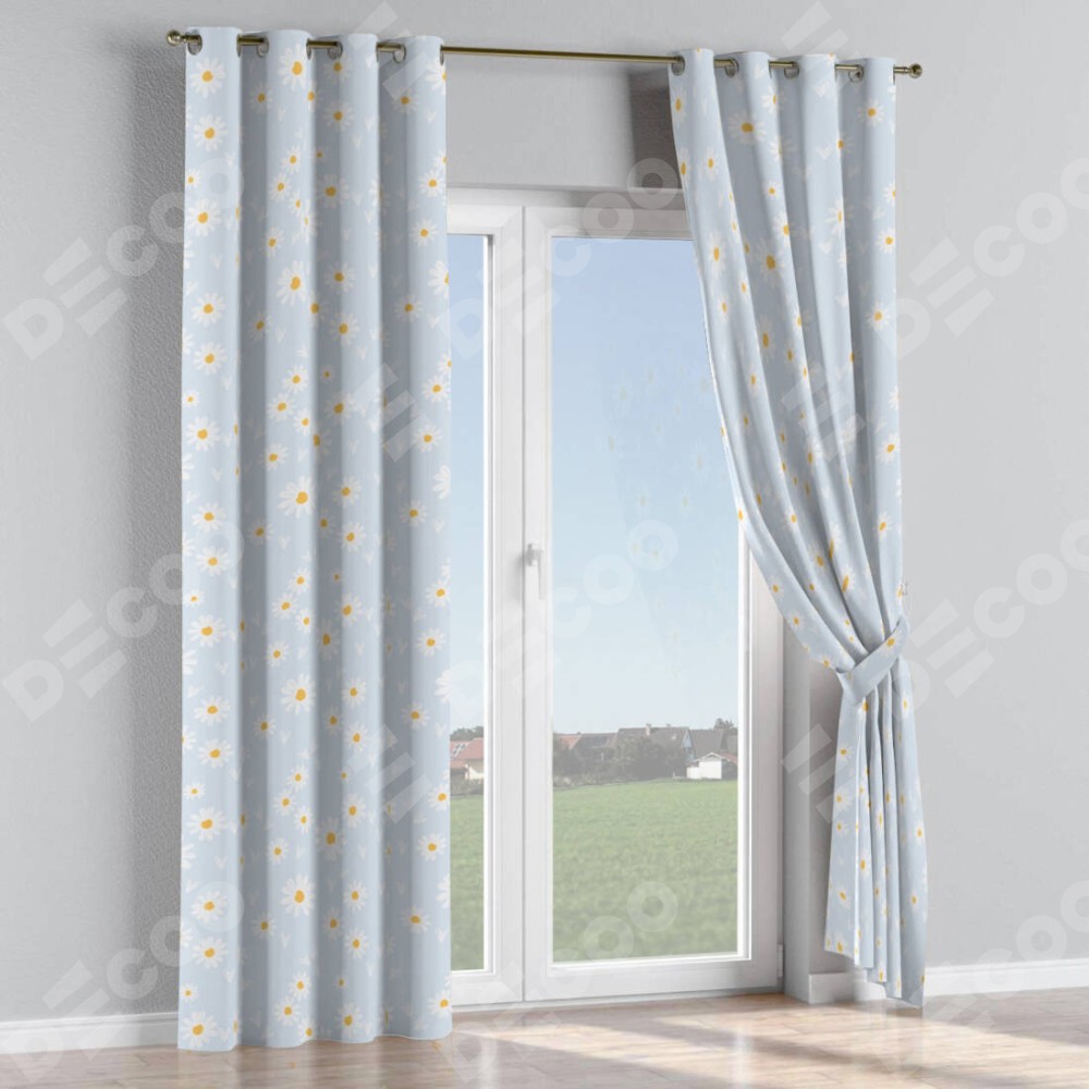 Комплект прямых штор, от производителя «Cortin», пошиты из ткани блэкаут с нанесением сублимационной печати «Летние ромашки». Данная модель пошита на люверсах, комплектуется на выбор круглым карнизом и подходит для монтажа на стену или потолок. Прямые шторы на люверсах шьются по стандарту с коэффициентом 1/2 (на 100 см. ширины проёма 200 см. ширины ткани), отличительным преимуществом данной модели является простой способ монтажа. Достаточно повесить ее на трубу и штора готова!