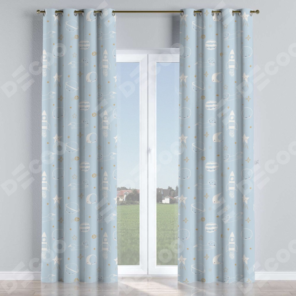 Комплект прямых штор, от производителя «Cortin», пошиты из ткани блэкаут с нанесением сублимационной печати «Прекрасная вселенная». Данная модель пошита на люверсах, комплектуется на выбор круглым карнизом и подходит для монтажа на стену или потолок. Прямые шторы на люверсах шьются по стандарту с коэффициентом 1/2 (на 100 см. ширины проёма 200 см. ширины ткани), отличительным преимуществом данной модели является простой способ монтажа. Достаточно повесить ее на трубу и штора готова!