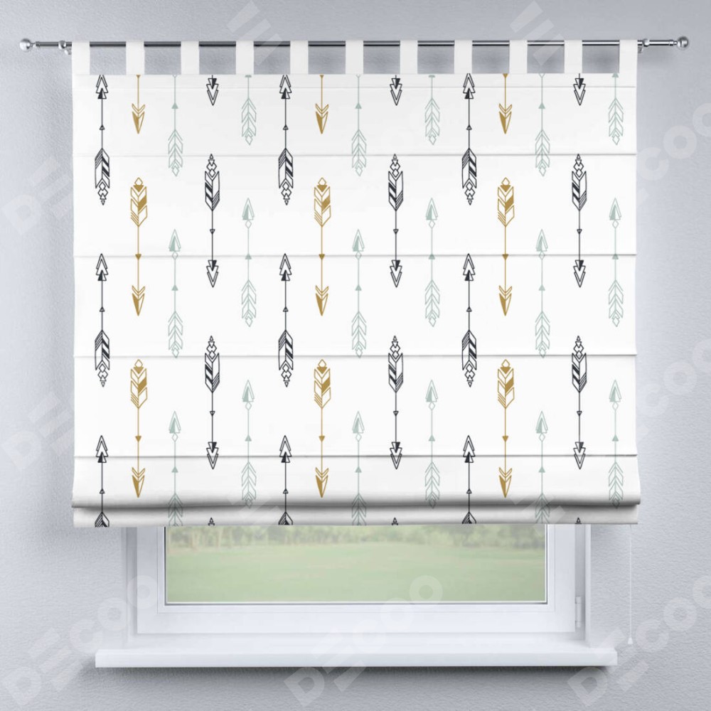 Римская штора производителя «Cortin», используется для проёма, пошита из ткани блэкаут с нанесением сублимационной печати «Любимые стрелки». Данная модель пошита на петлях, комплектуется на выбор круглым карнизом и подходит для монтажа на стену. Римская штора на петлях имеет простую систему регулировки высоты, отличительным преимуществом данной модели является простой способ монтажа. Достаточно повесить ее на трубу и штора готова!