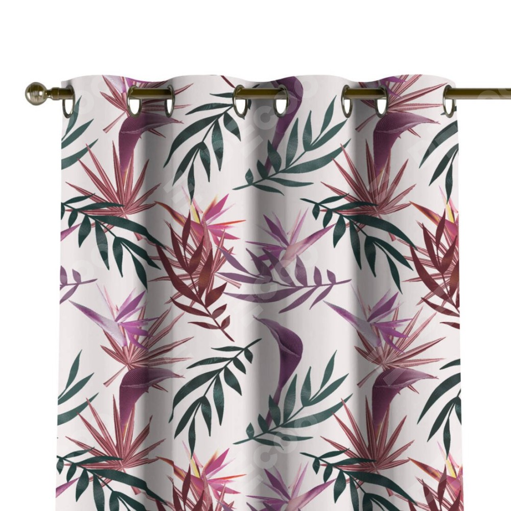 Комплект прямых штор, от производителя «Cortin», пошиты из ткани блэкаут с нанесением сублимационной печати «Тропические побеги». Данная модель пошита на люверсах, комплектуется на выбор круглым карнизом и подходит для монтажа на стену или потолок. Прямые шторы на люверсах шьются по стандарту с коэффициентом 1/2 (на 100 см. ширины проёма 200 см. ширины ткани), отличительным преимуществом данной модели является простой способ монтажа. Достаточно повесить ее на трубу и штора готова!
