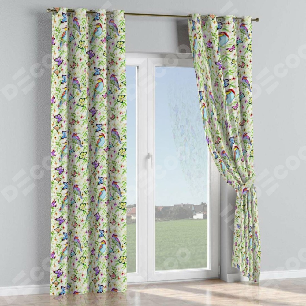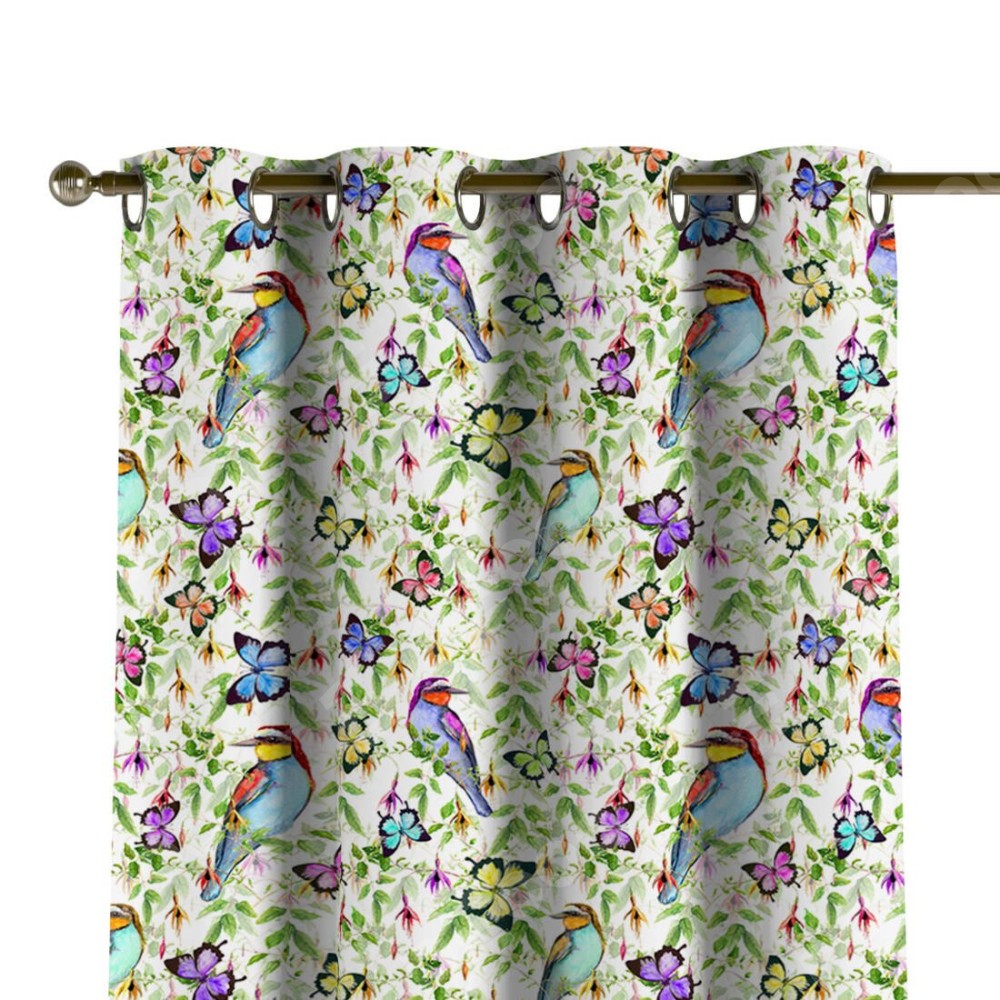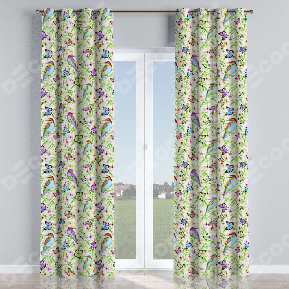 Комплект прямых штор, от производителя «Cortin», пошиты из ткани блэкаут с нанесением сублимационной печати «Тропические птицы». Данная модель пошита на люверсах, комплектуется на выбор круглым карнизом и подходит для монтажа на стену или потолок. Прямые шторы на люверсах шьются по стандарту с коэффициентом 1/2 (на 100 см. ширины проёма 200 см. ширины ткани), отличительным преимуществом данной модели является простой способ монтажа. Достаточно повесить ее на трубу и штора готова!